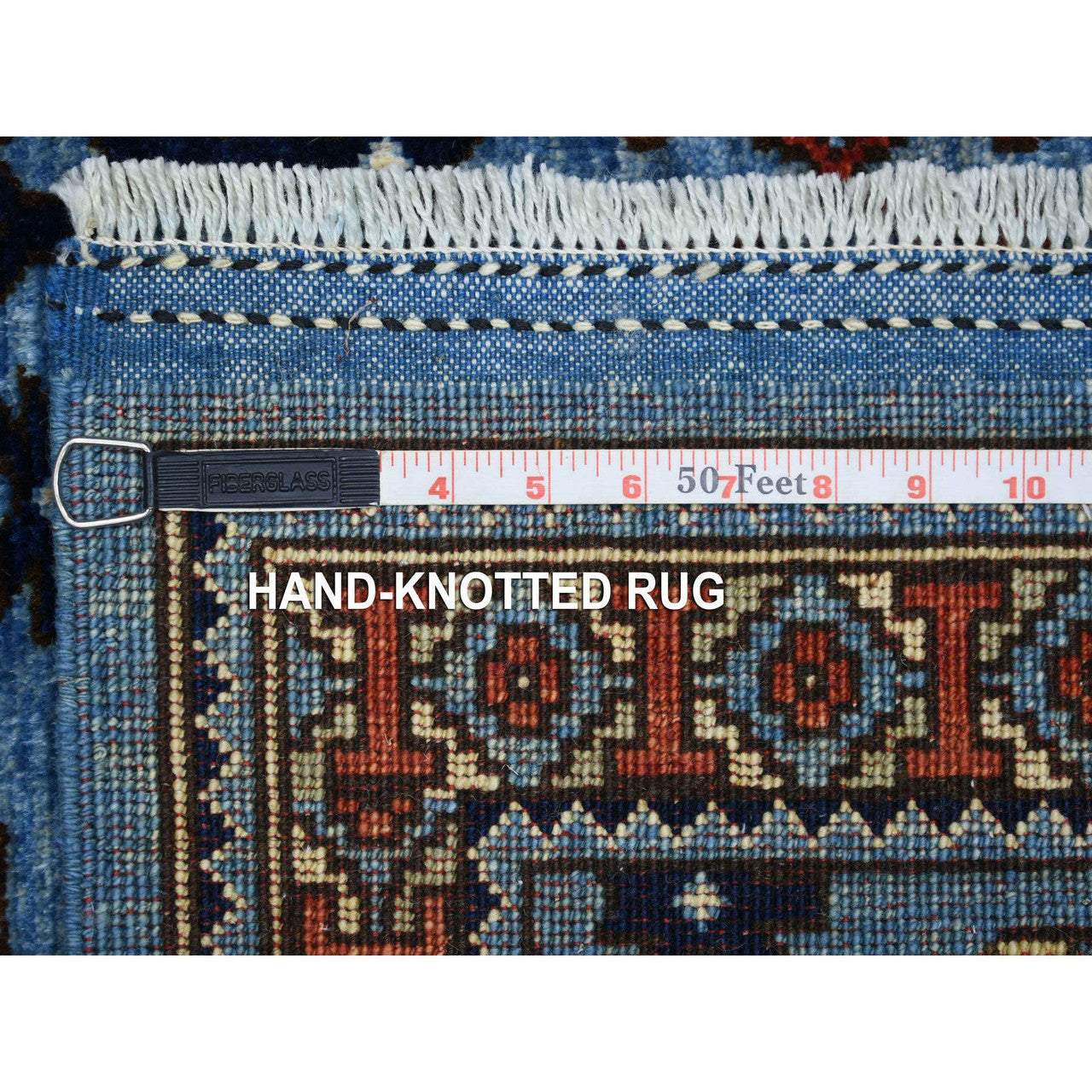 Tribal & Geometric Wool Hand Knotted Rug Blue No Border 4.1X9.9 -O070392