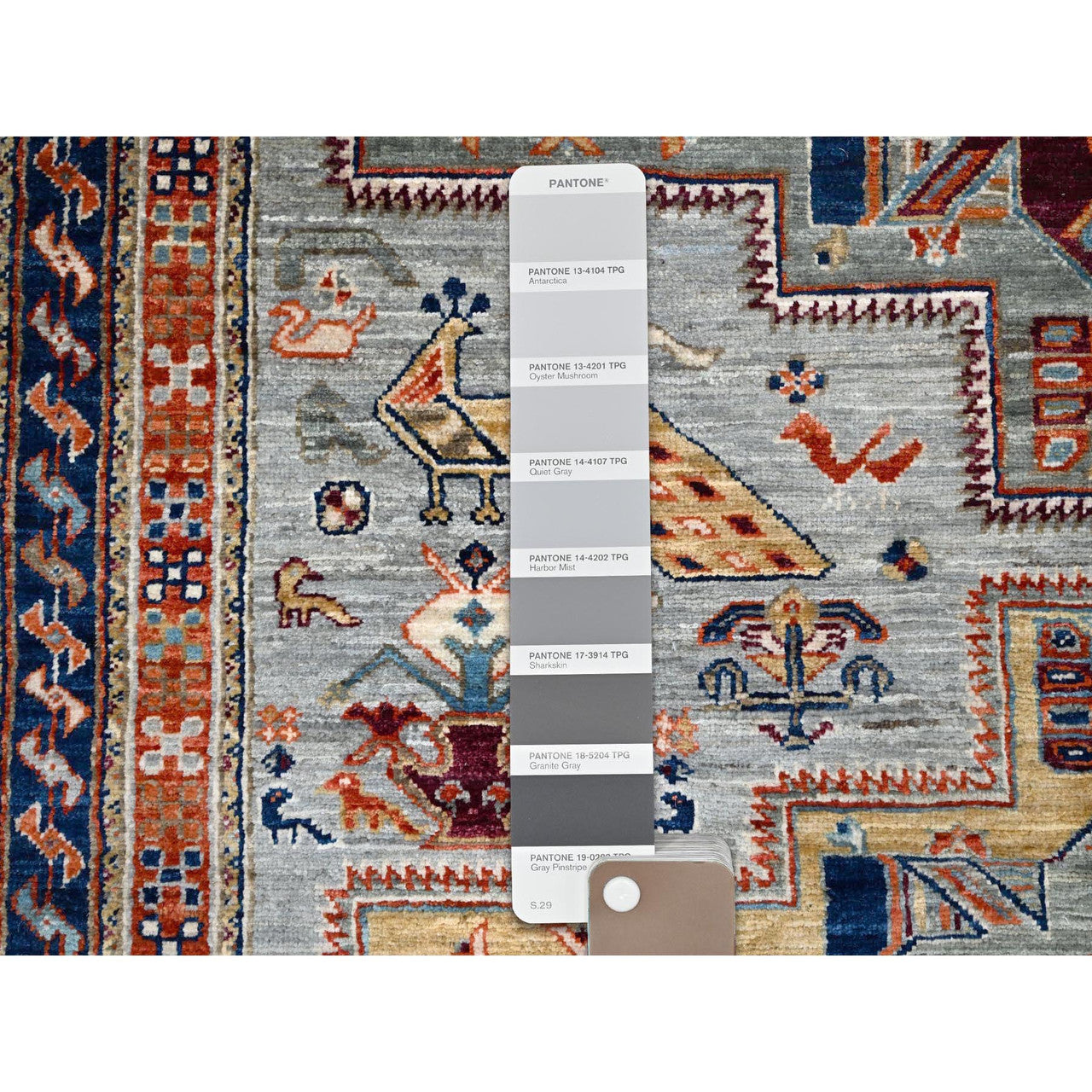 Tribal & Geometric Wool Hand Knotted Rug Grey Blue 4.2X11.3 -O086418