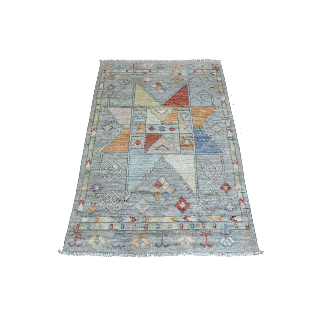 Tribal & Geometric Wool Hand Knotted Rug Grey Ivory 3.0X4.10 -O070455