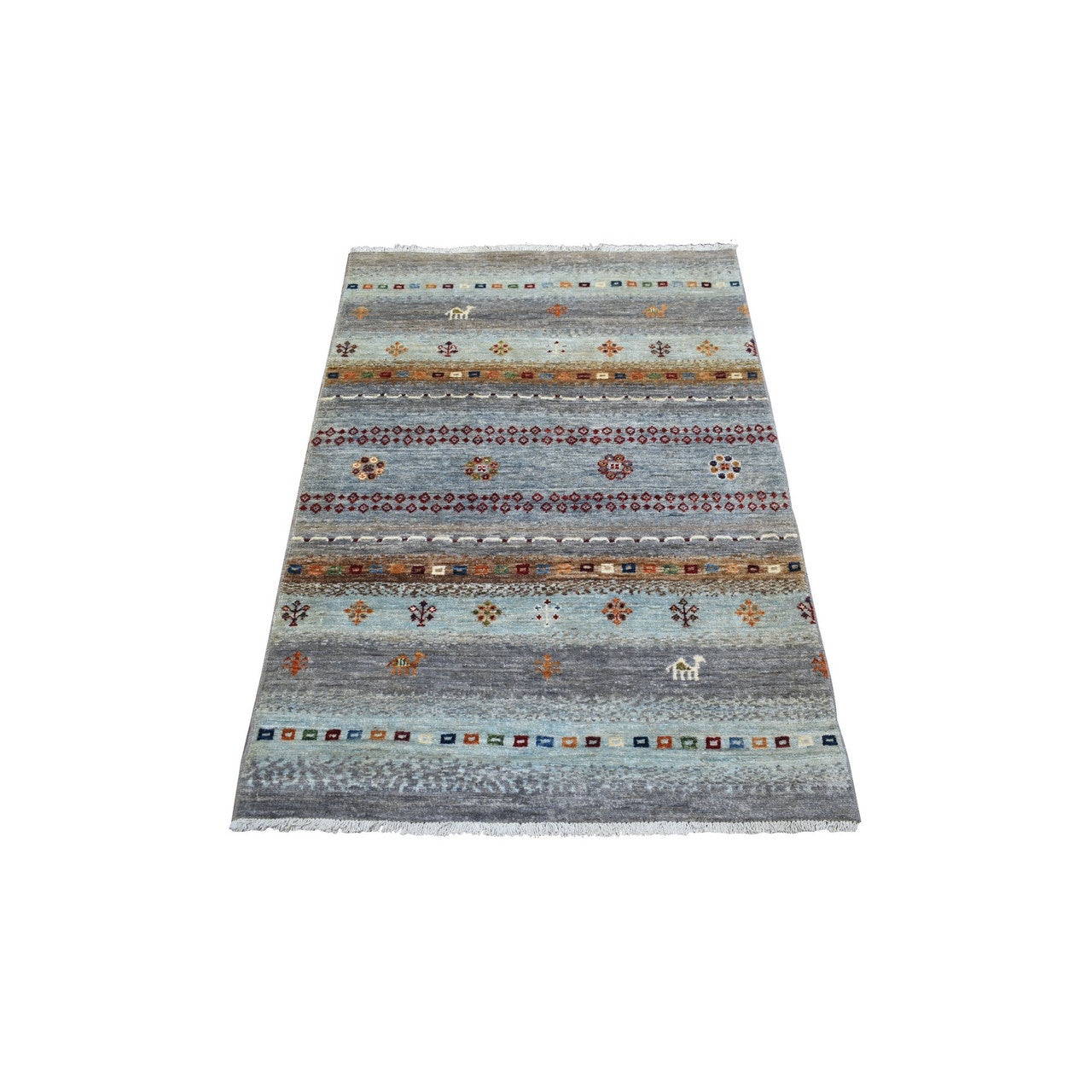 Tribal & Geometric Wool Hand Knotted Rug Grey No Border 3.3X4.9 -O071138