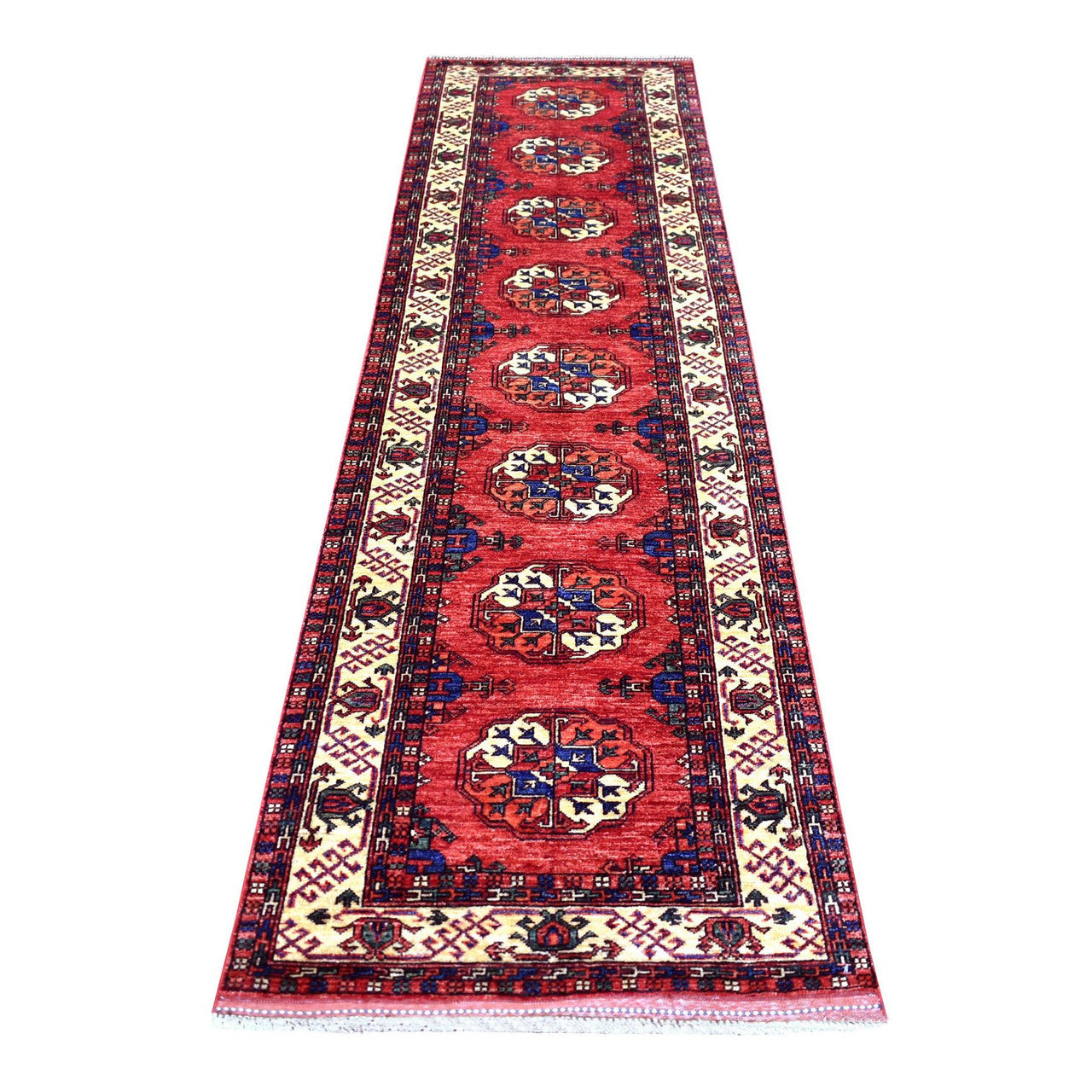 Tribal & Geometric Wool Hand Knotted Rug Red Ivory 2.8X9.7 -O070620