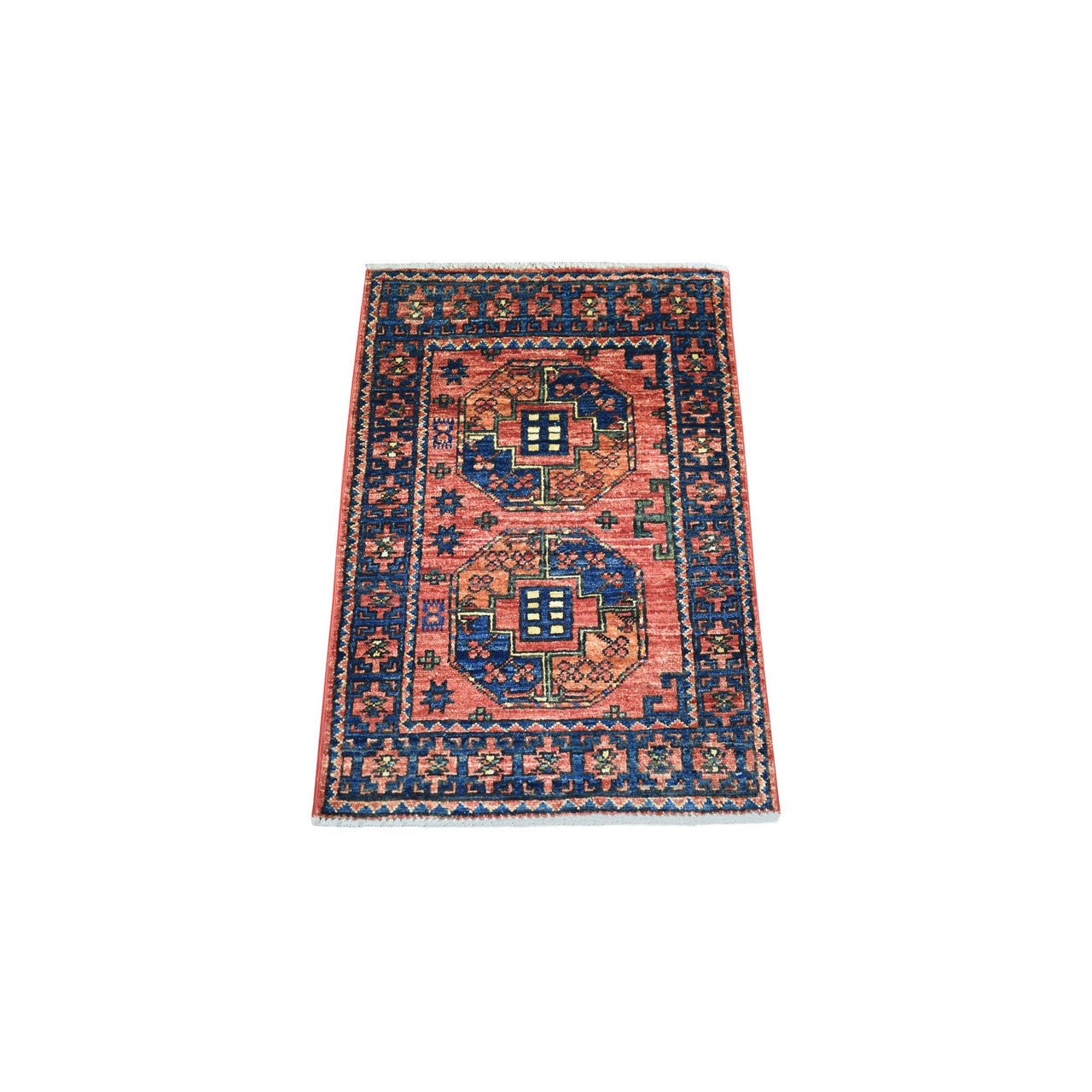Tribal & Geometric Wool Hand Knotted Rug Red Navy Blue 2.0X3.0 -O070757