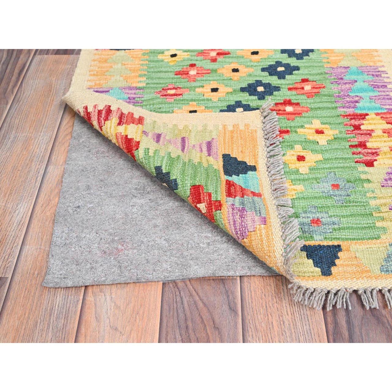 Flat Weave Wool Hand Woven Rug Green No Border 2.0X3.0 -O085749
