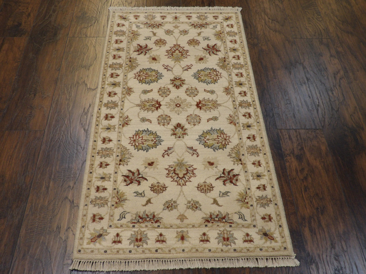 Exact Size: 2'4"x4'6"Construction: Hand KnottedShape: RectangleMaterial: WoolColor Combination: Ivory/IvoryOrigin: IndiaThis is a Real Hand-Knotted Oriental Rug. It is not hand-tufted or a machine made rug. Our entire inventory is made of either hand-knotted or hand-woven rugs.Please Note: Due to packaging the texture of the rug will/may be pressed. This is not a defect and should be unnoticeable after several days.Note: Dear Valued-Customer, please be advised that the package size does not reflect the rugs actual size. Many times it is folded and then rolled in order to meet FedEx and UPS shipping regulations.We have made every effort to display the colors of our rugs as accurate as possible. But the colors may vary depending on your monitor type and the illumination levels of your space.