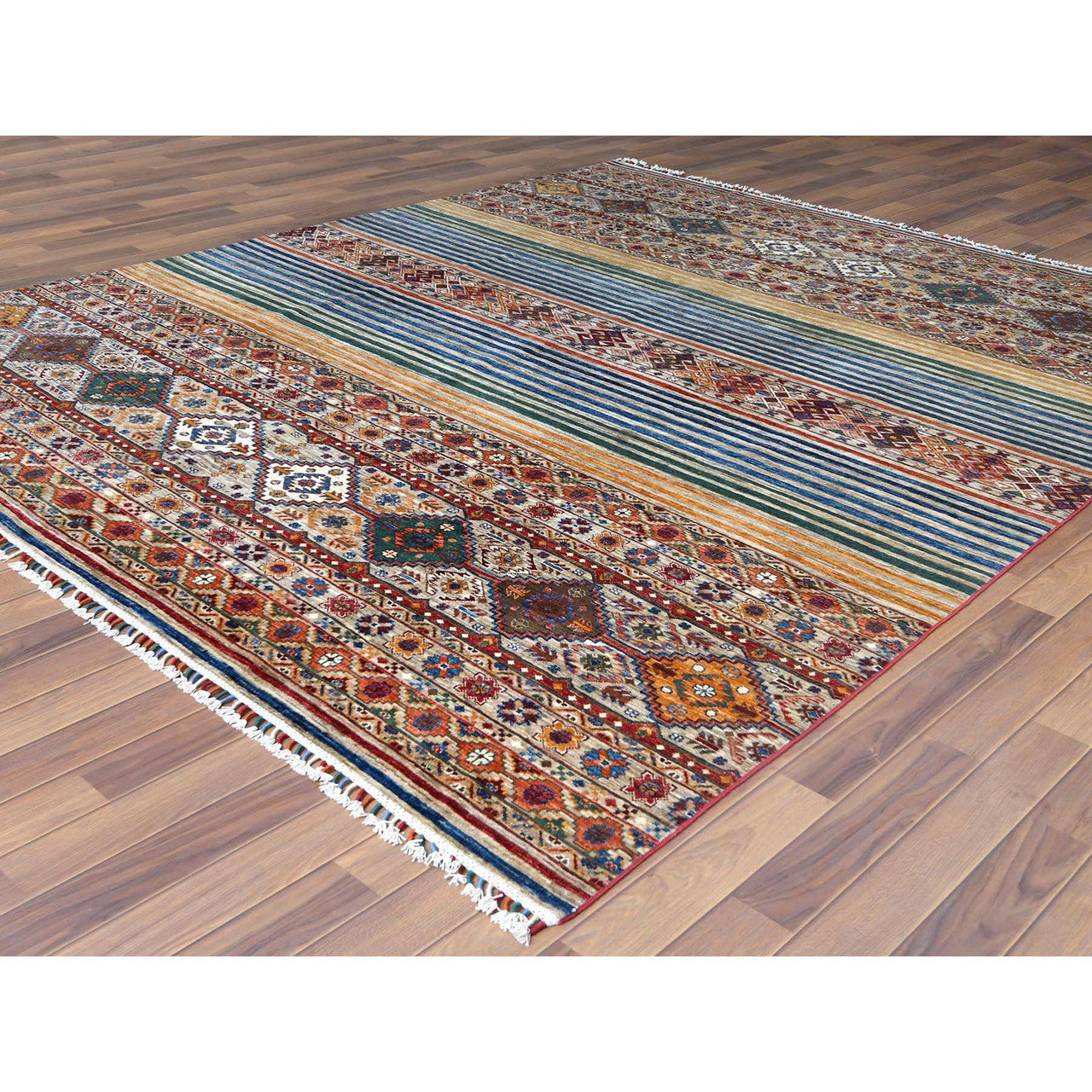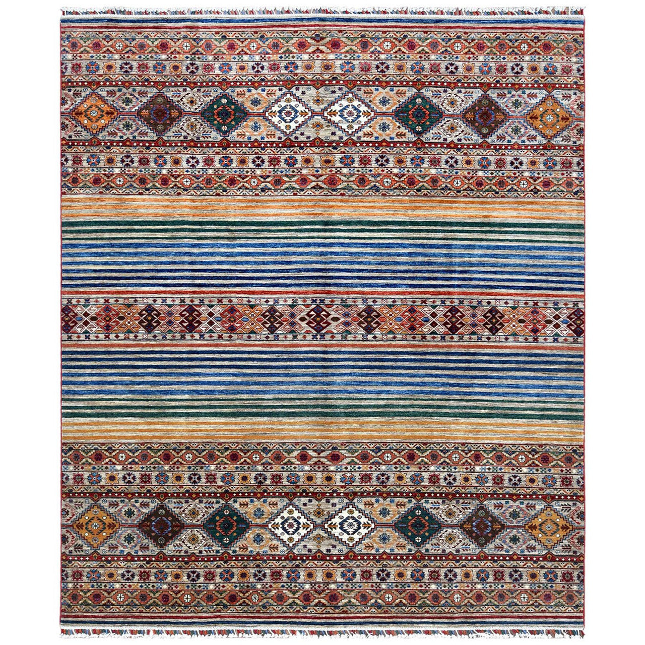 Our entire inventory is made of either hand-knotted or hand-woven rugs. Please Note: Due to packaging the texture of the rug will/may be pressed. This is not a defect and should be unnoticeable after several days. Note: Dear Valued-Customer, please be advised that the package size does not reflect the rugs actual size. Many times it is folded and then rolled in order to meet FedEx and UPS shipping regulations. We have made every effort to display the colors of our rugs as accurately as possible. But the colors may vary depending on your monitor type and the illumination levels of your space.