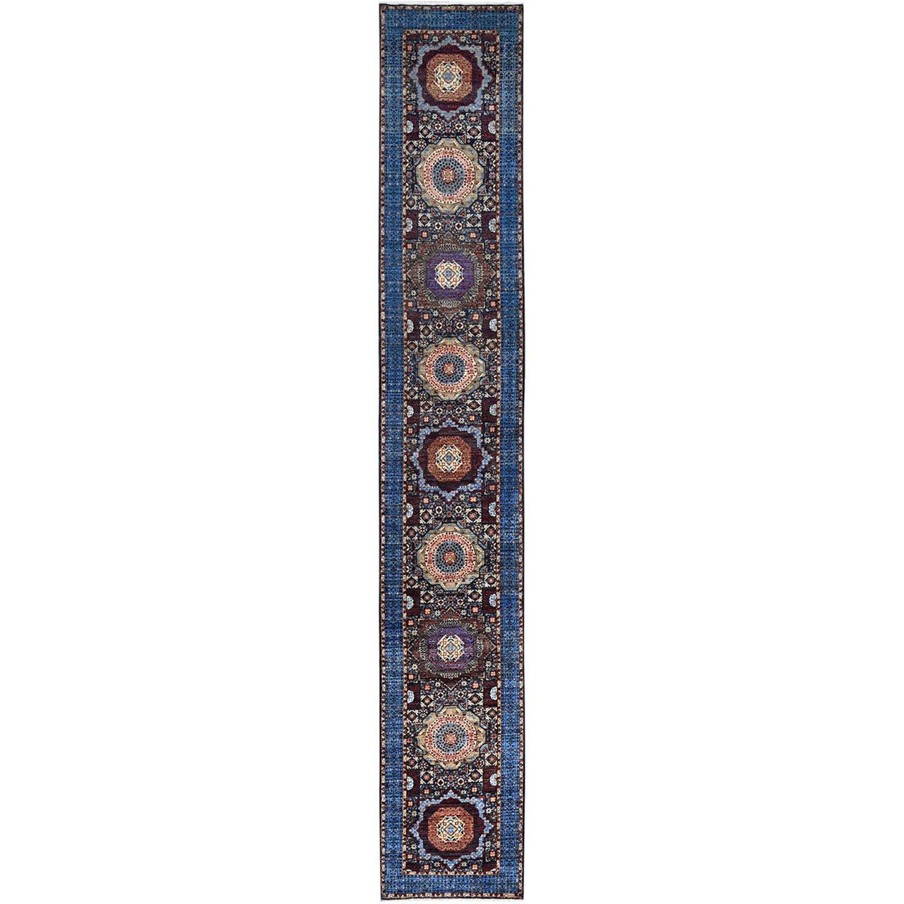 Mamluk Wool Hand Knotted Rug Blue Blue 2.6X15.9 -O086747