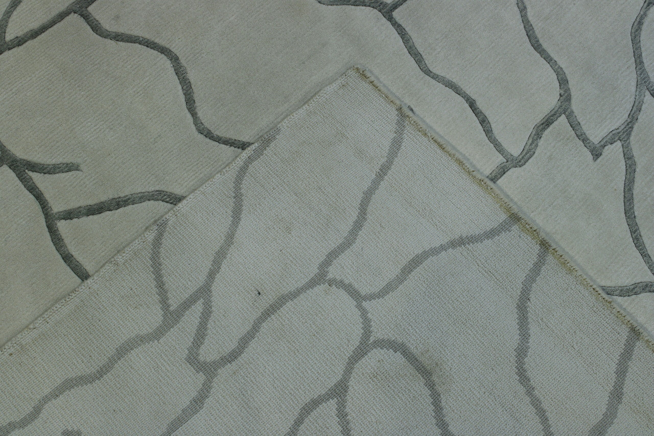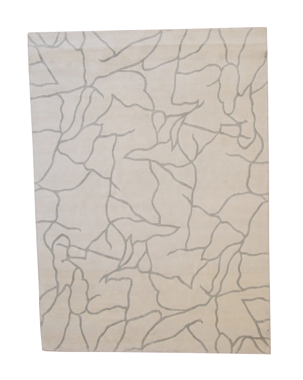 Exact Size: 5.1x7.0Construction: Hand KnottedShape: RectangleMaterial: Wool/SilkColor Combination: White/GreyOrigin: India