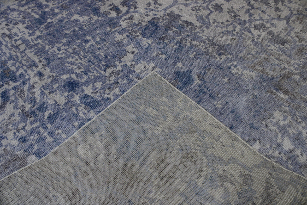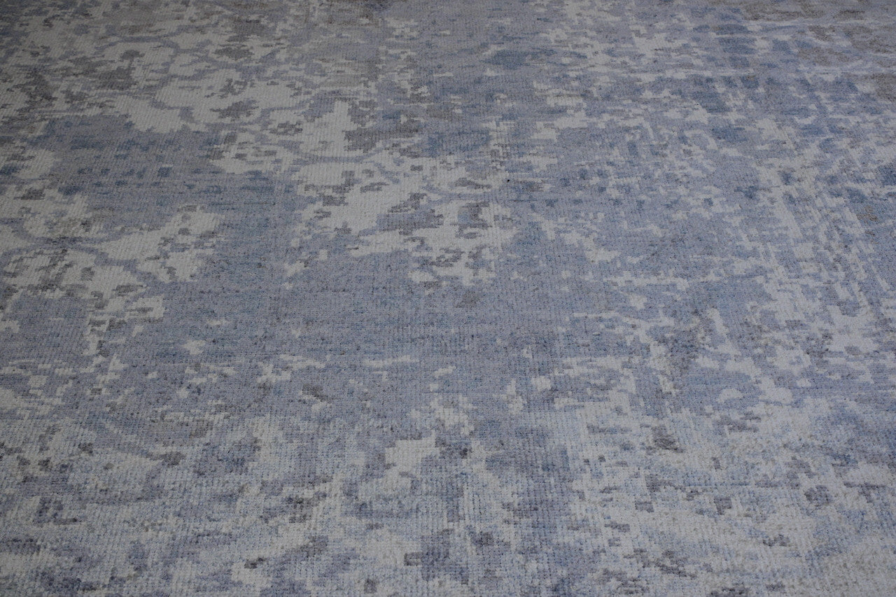 Exact Size: 8.10x11.10Construction: Hand KnottedShape: RectangleMaterial: ViscoseColor Combination: Blue/GreyStyle: ModernOrigin: India