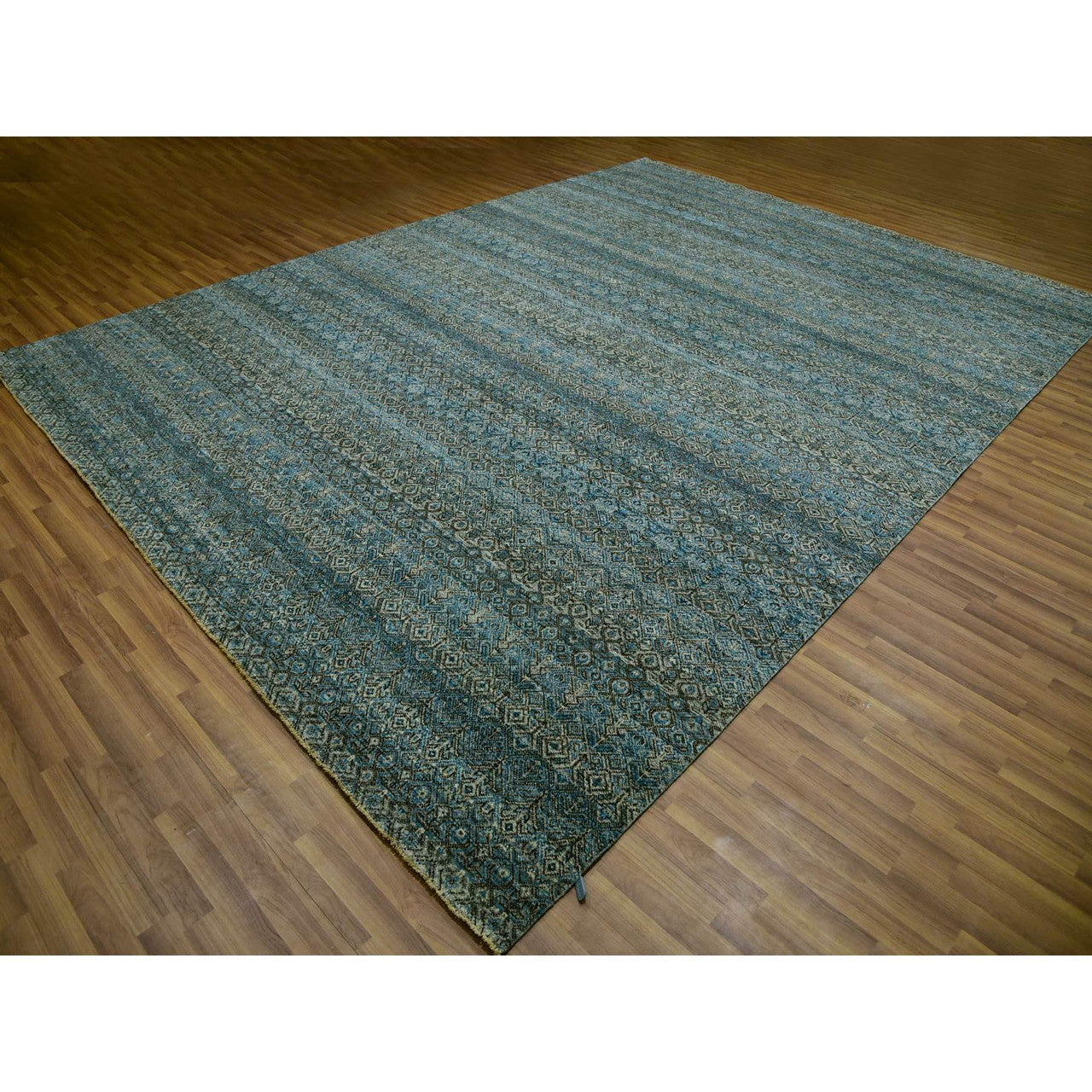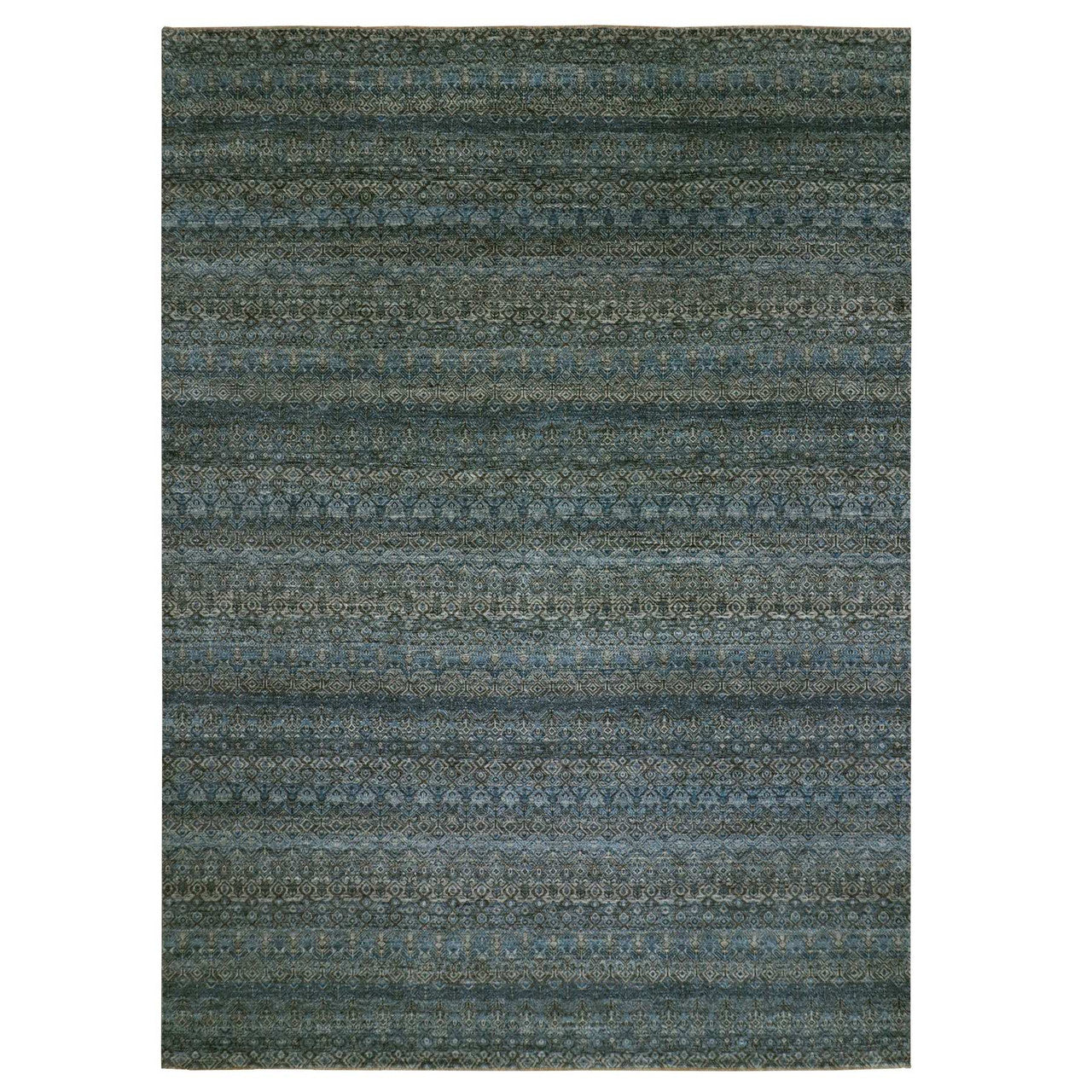 Modern and Contemporary Wool Hand Knotted Rug Blue No Border 10.0X13.11 -O079991