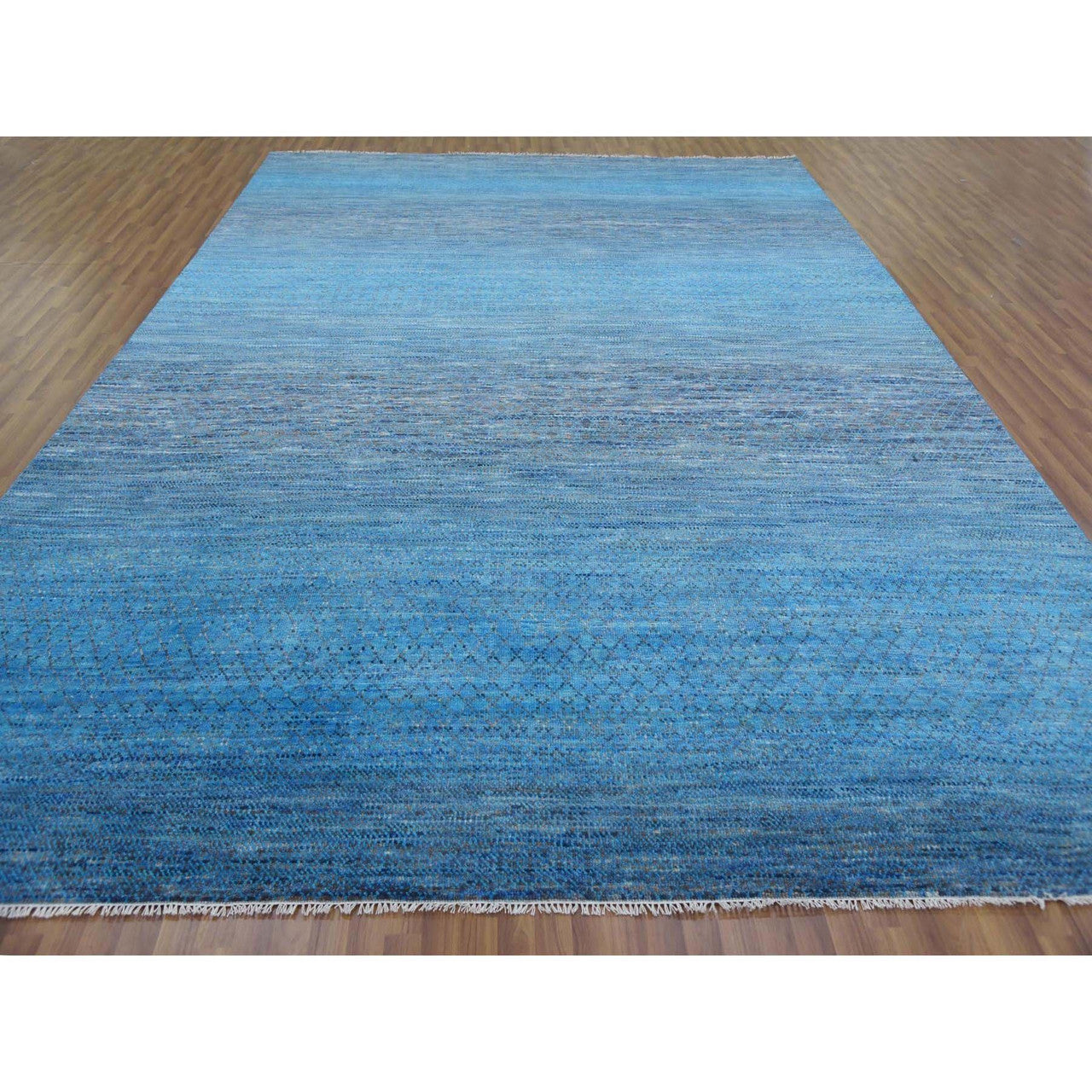 Modern and Contemporary Wool Hand Knotted Rug Blue No Border 10.0X14.3 -O079172