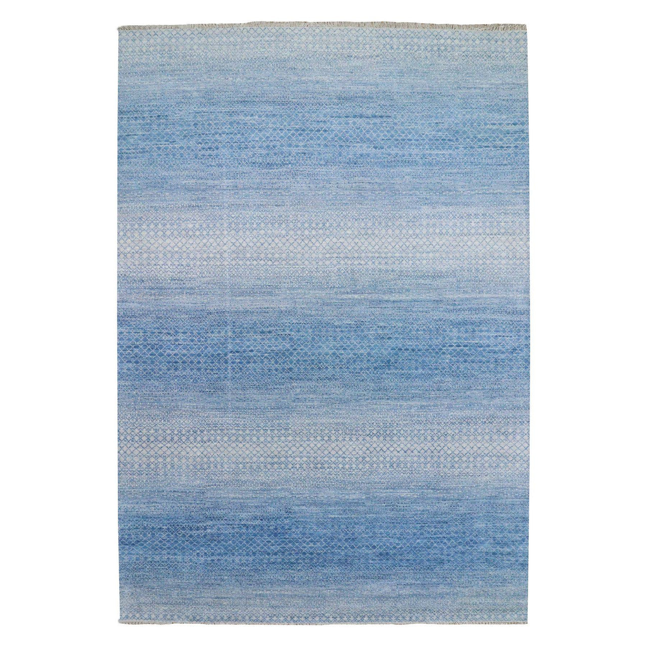 Modern and Contemporary Wool Hand Knotted Rug Blue No Border 10.0X14.4 -O079180