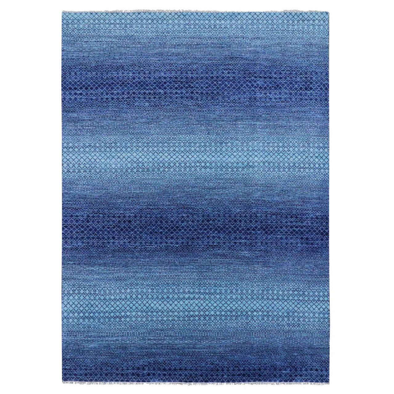 Modern and Contemporary Wool Hand Knotted Rug Blue No Border 9.0X12.5 -O079035