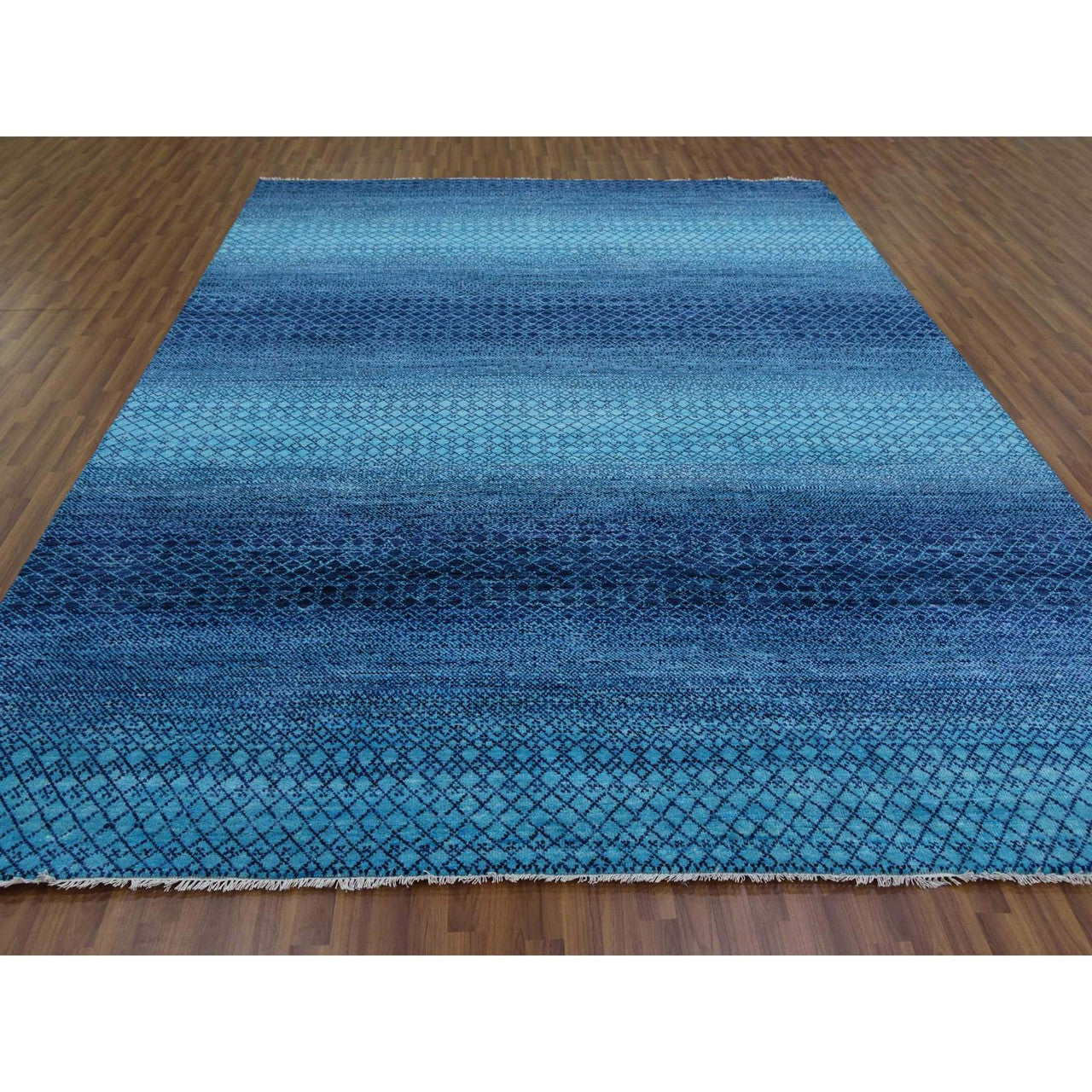 Modern and Contemporary Wool Hand Knotted Rug Blue No Border 9.1X11.8 -O079227