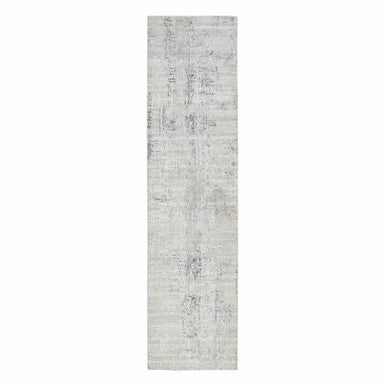 Modern and Contemporary Wool Hand Knotted Rug Grey No Border 2.6X10.1 -O064139