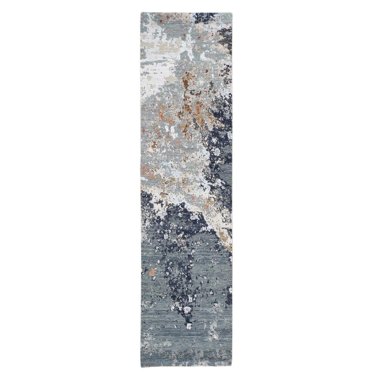 Modern and Contemporary Wool Hand Knotted Rug Grey Not Border 2.6X10.1 -O066864