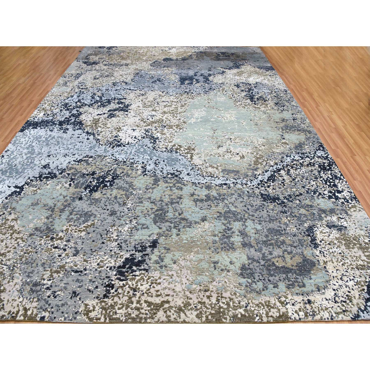 Modern and Contemporary Wool Hand Knotted Rug Ivory No Border 10.0X13.10 -O083080