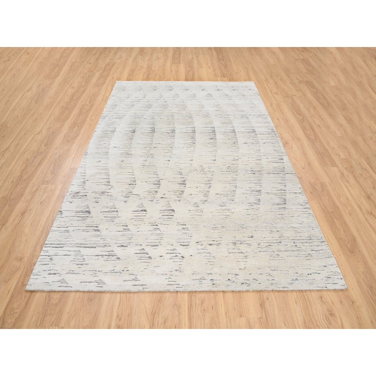 Modern and Contemporary Wool Hand Knotted Rug Ivory No Border 6.0X9.0 -O063375