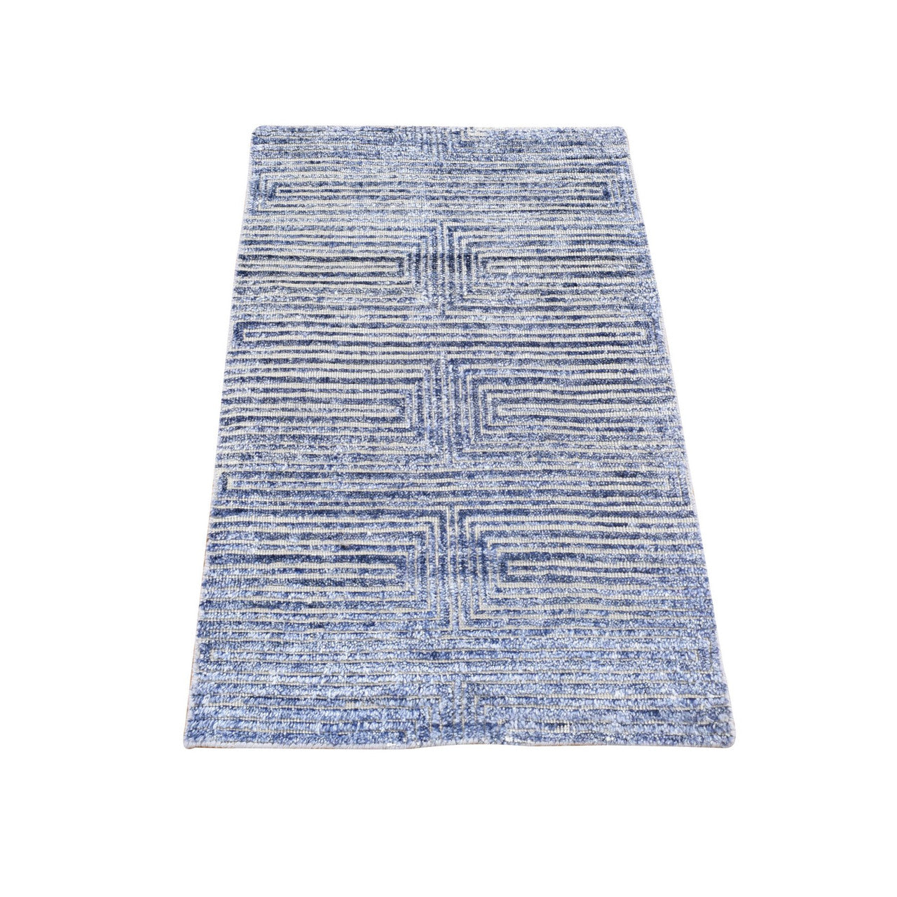Modern and Contemporary Wool & Silk Hand Knotted Rug Blue No Border 2.0X3.0 -O080356