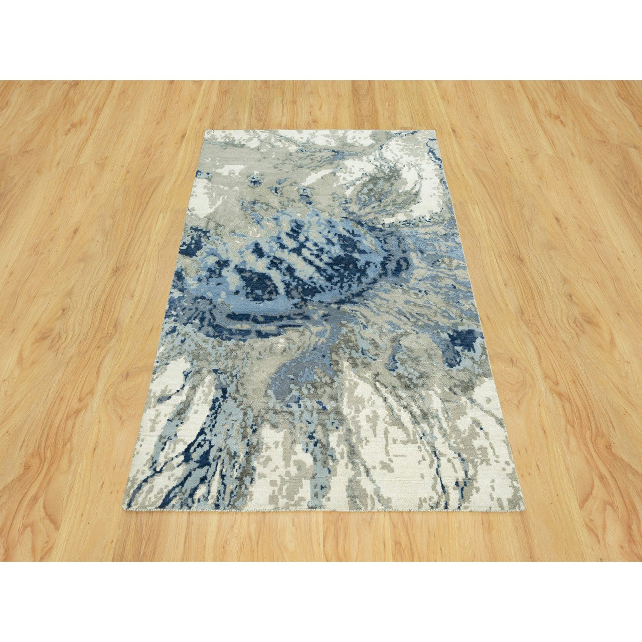 Modern and Contemporary Wool & Silk Hand Knotted Rug Blue No Border 4.0X6.1 -O090459