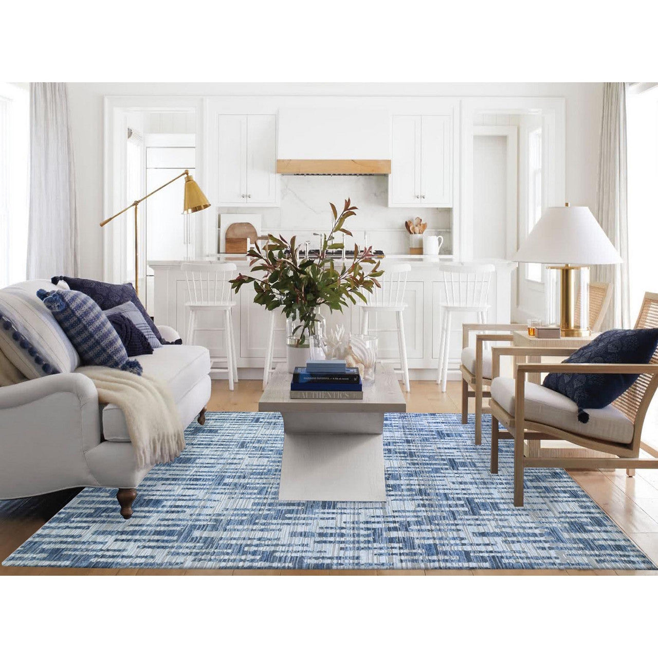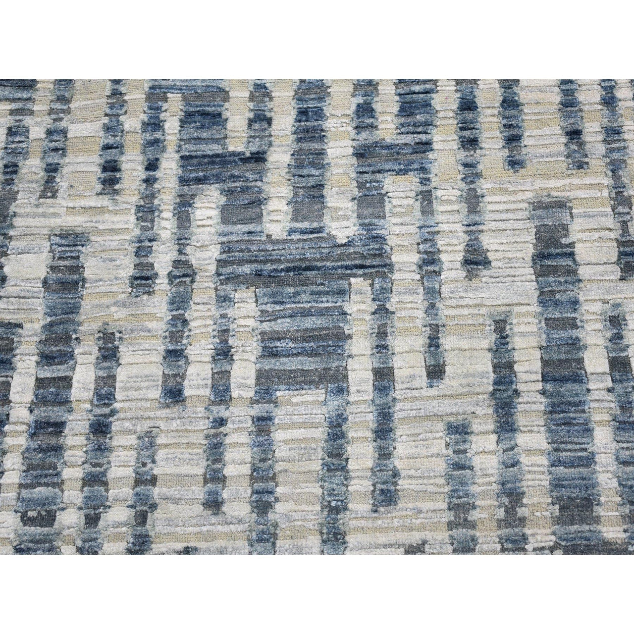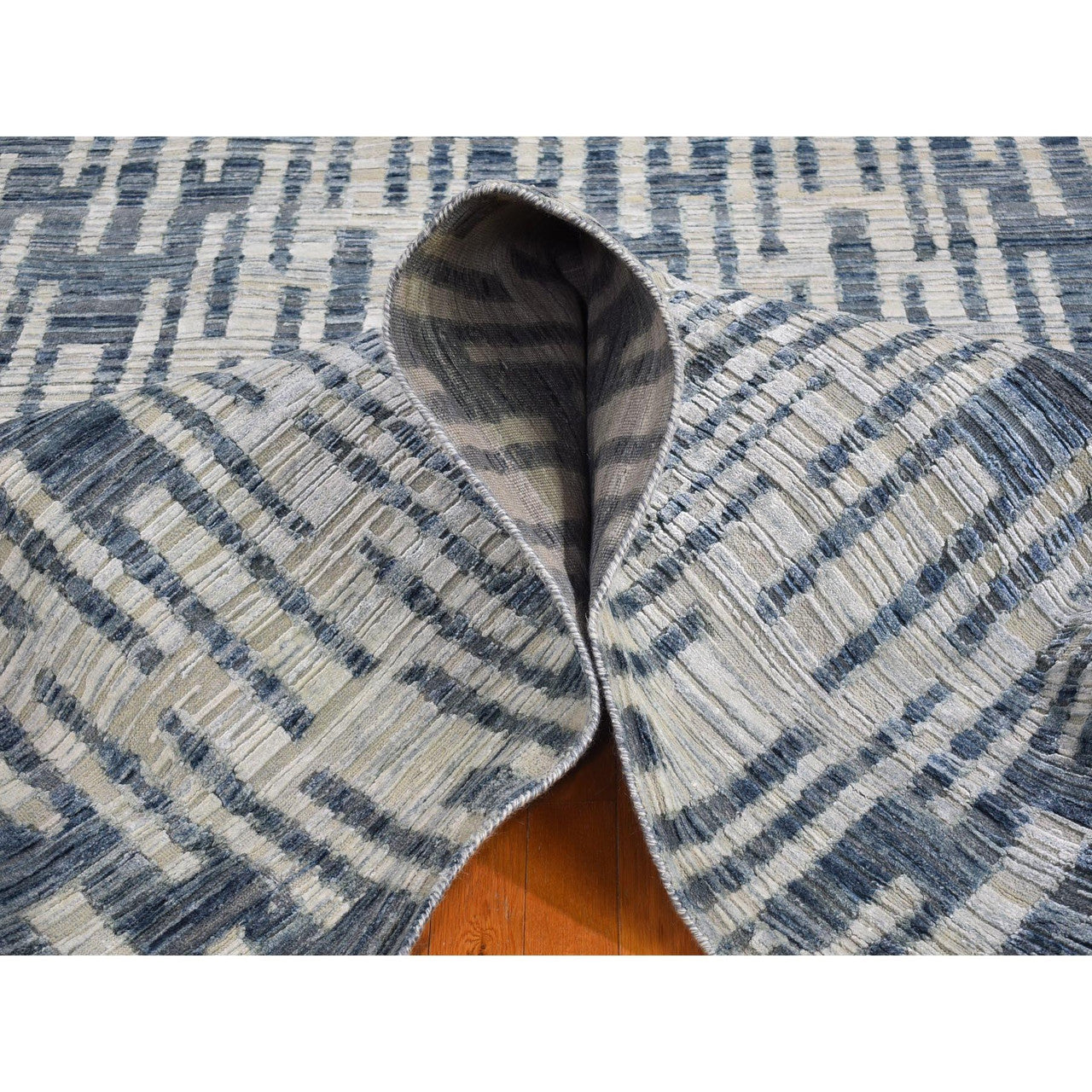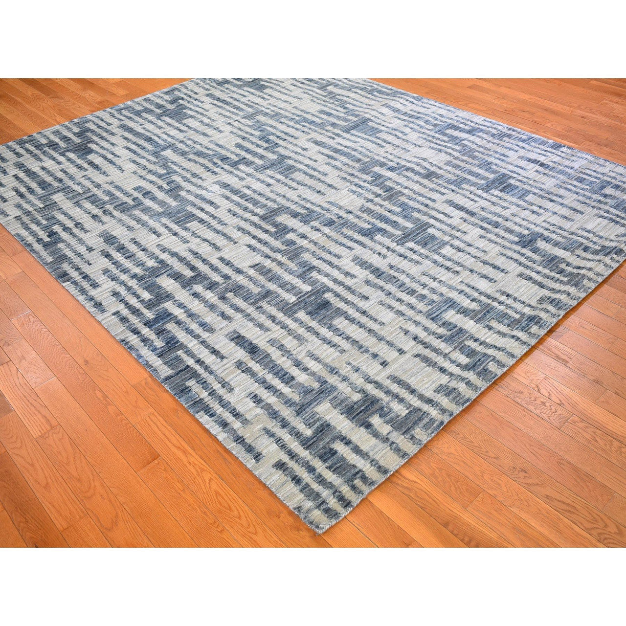 Modern and Contemporary Wool & Silk Hand Knotted Rug Blue No Border 8.0X10.0 -O066377