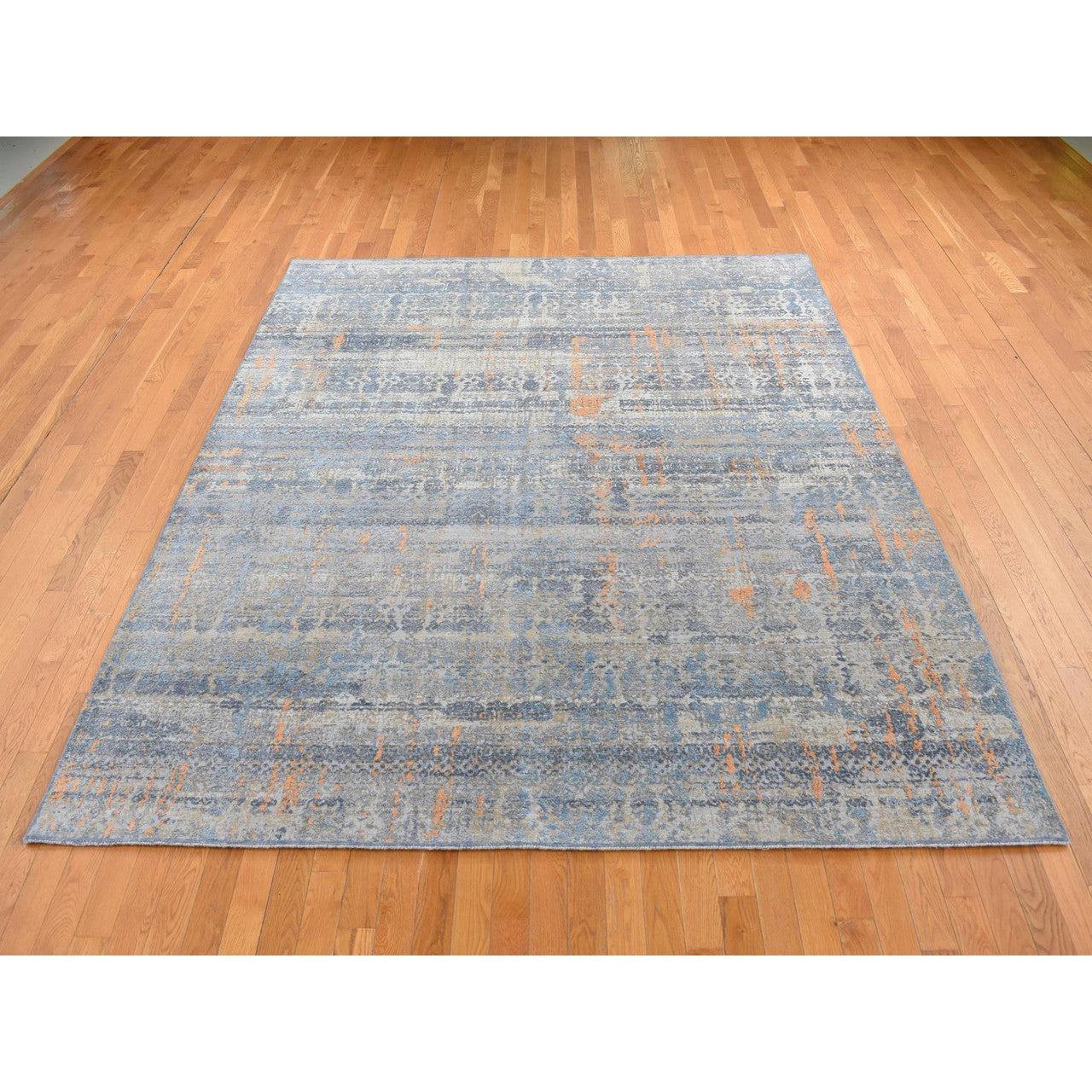 Modern and Contemporary Wool & Silk Hand Knotted Rug Blue No Border 8.0X10.0 -O087514