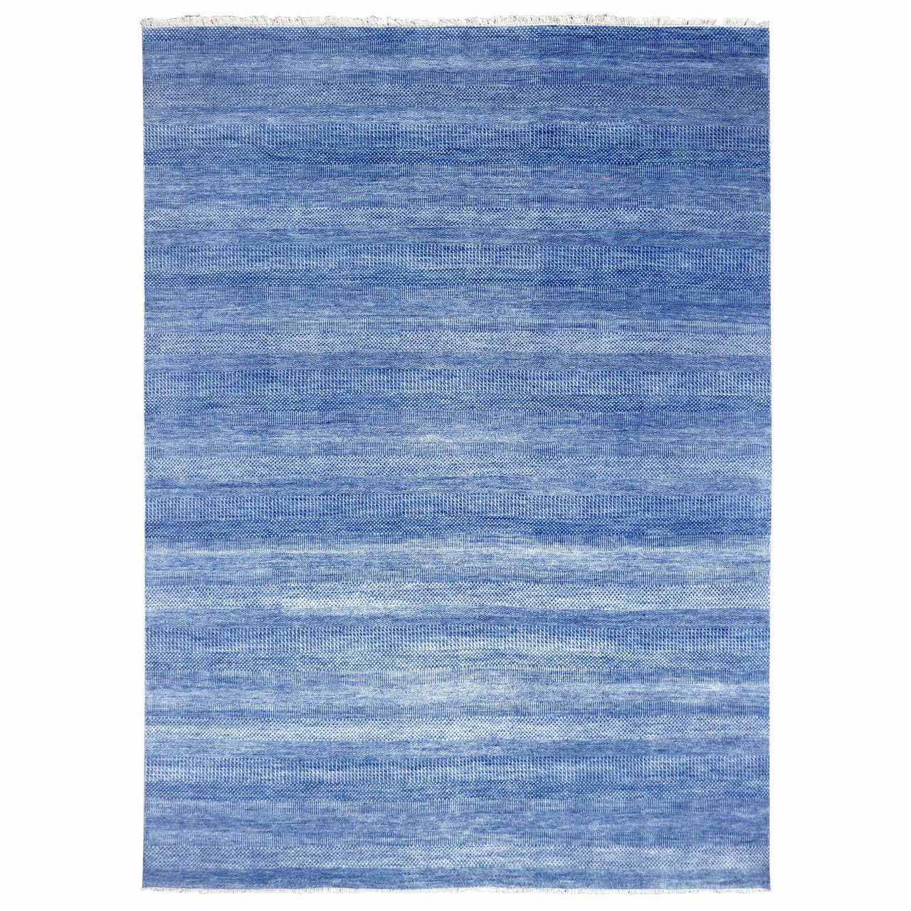 Modern and Contemporary Wool & Silk Hand Knotted Rug Blue No Border 9.1X12.2 -O079306
