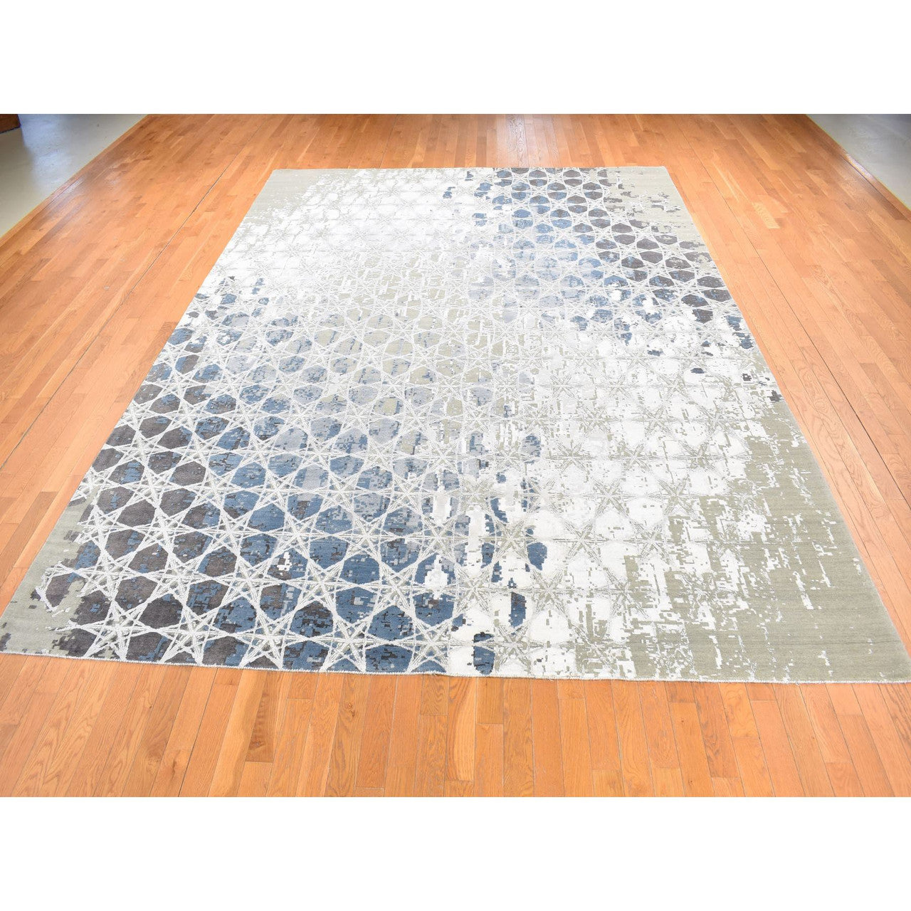 Modern and Contemporary Wool & Silk Hand Knotted Rug Grey No Border 10.0X14.1 -O080793