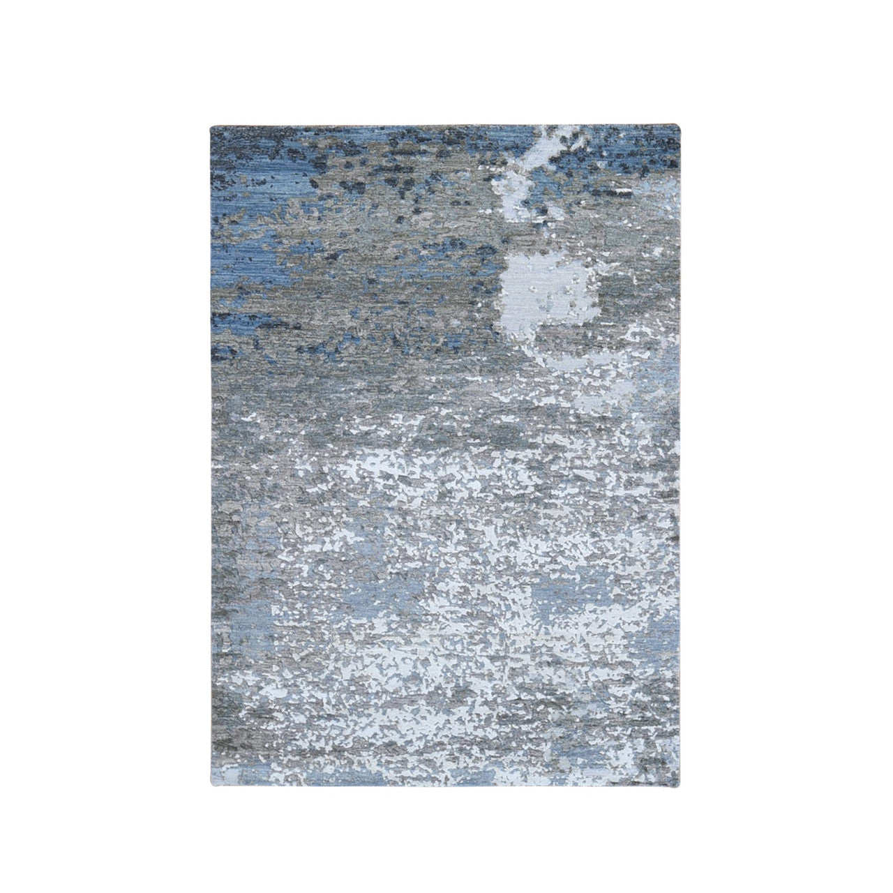 Modern and Contemporary Wool & Silk Hand Knotted Rug Grey No Border 4.0X6.0 -O066528