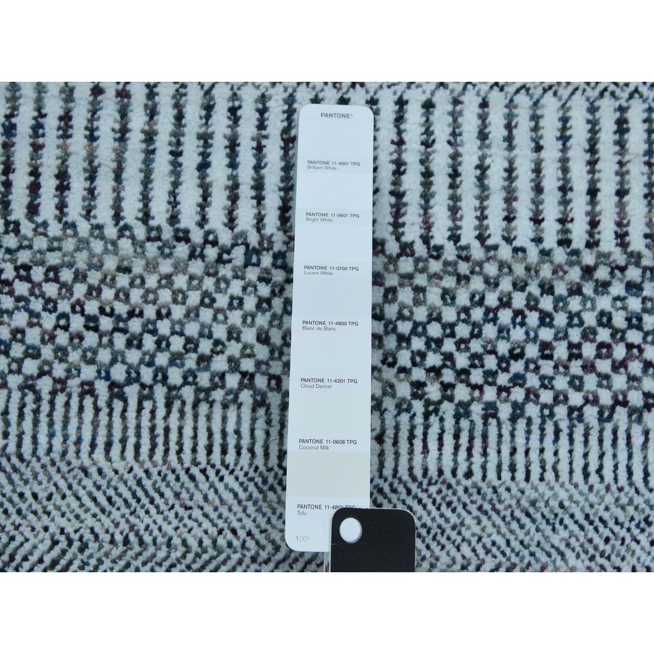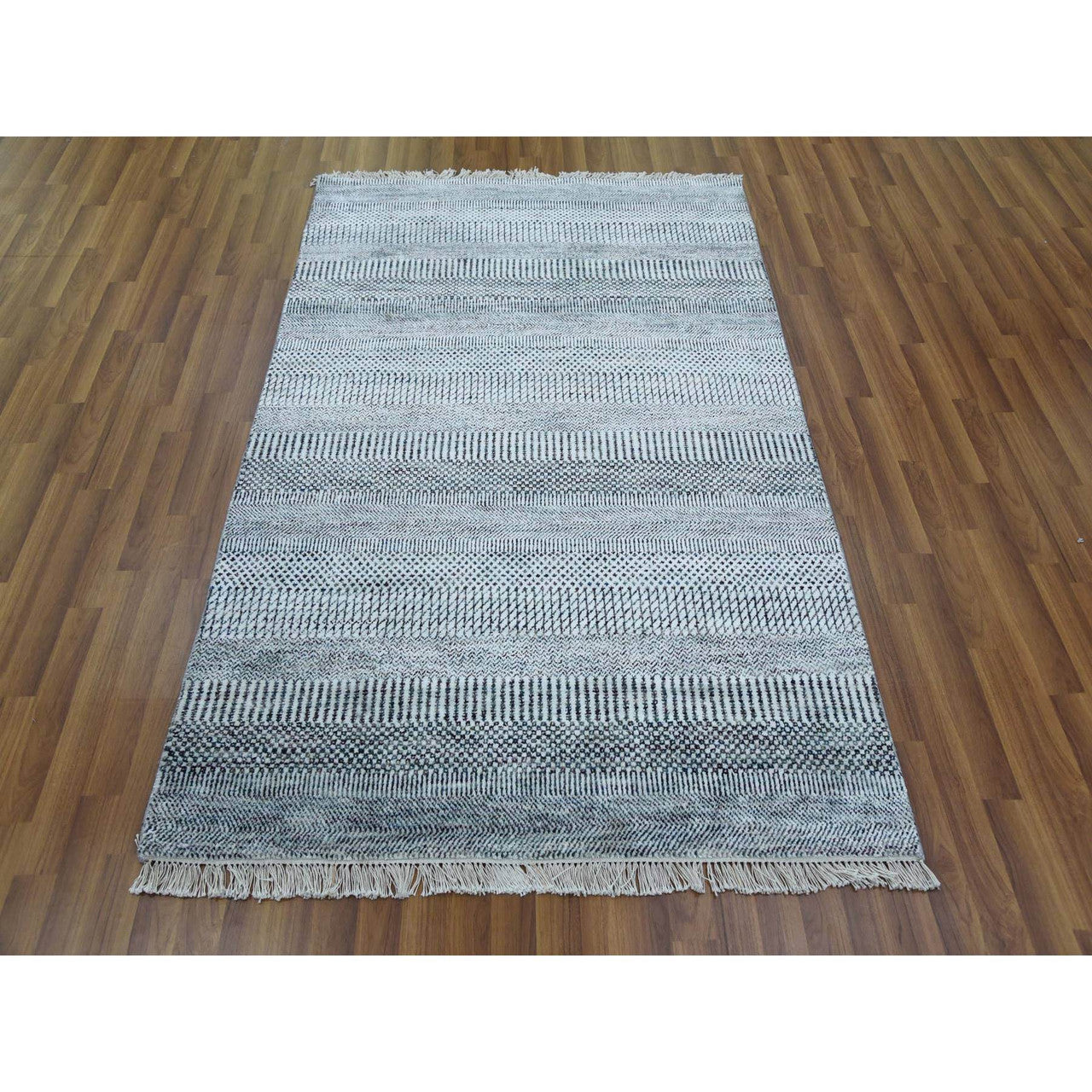 Modern and Contemporary Wool & Silk Hand Knotted Rug Ivory No Border 4.0X6.0 -O079246