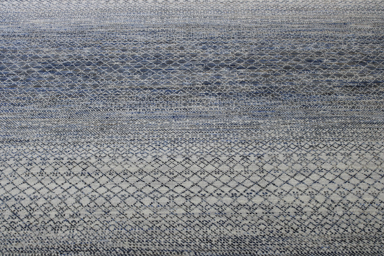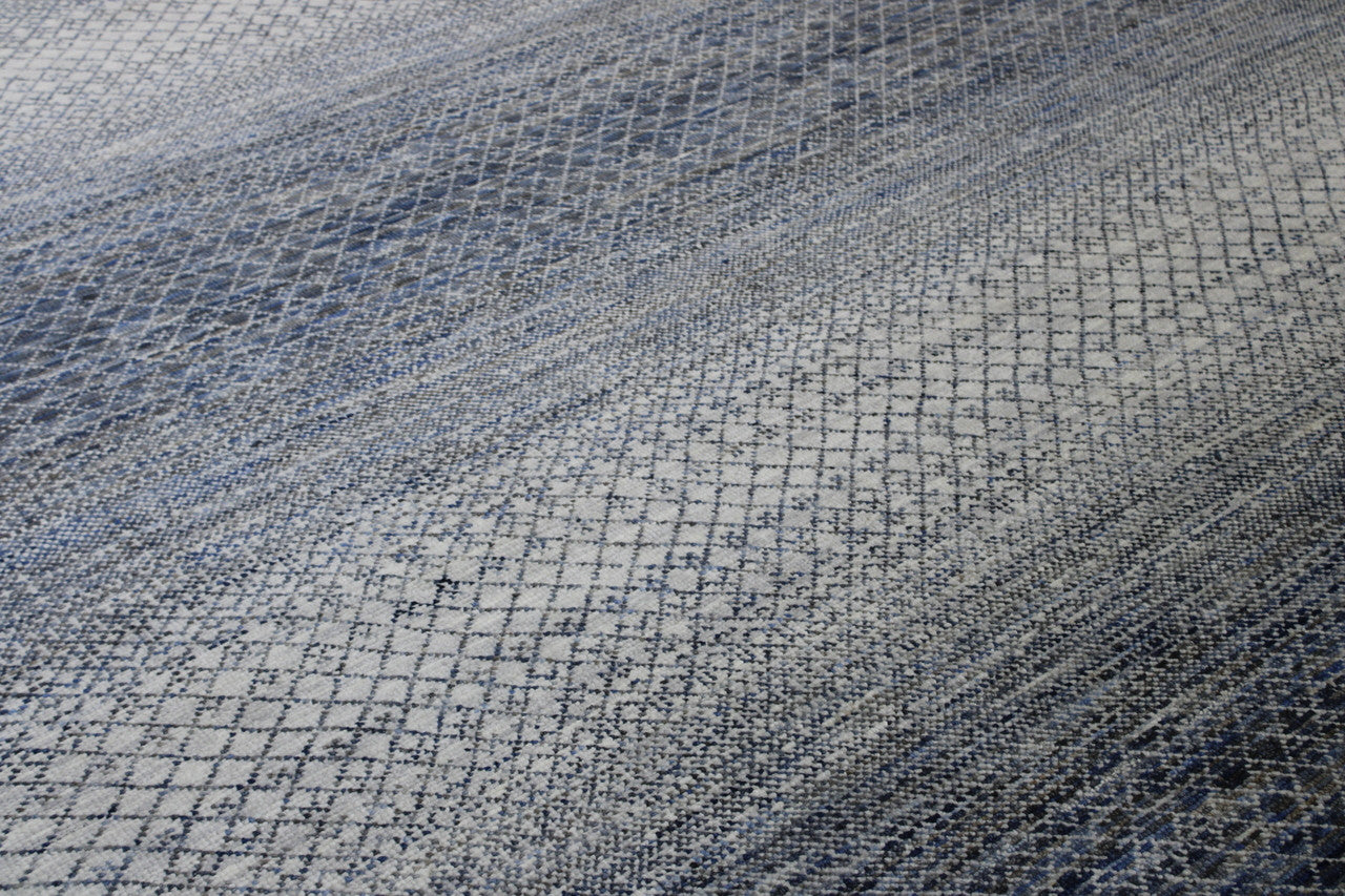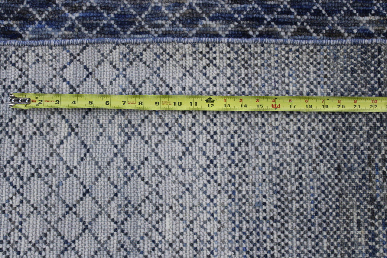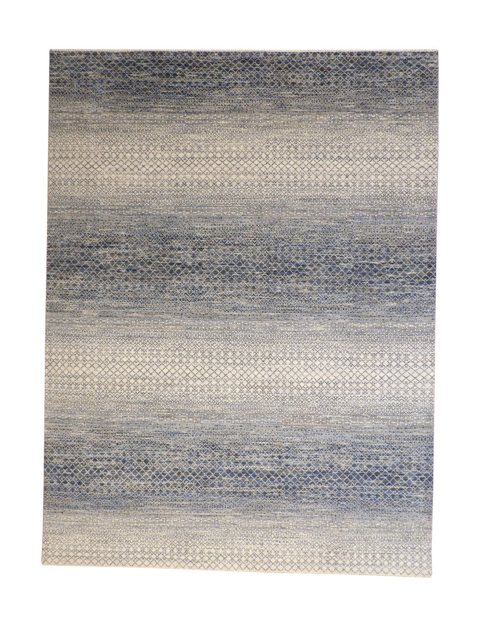 Exact Size: 9.0x12.0Construction: Hand KnottedShape: RectangleMaterial: WoolColor Combination: Blue/GreyStyle: ModernOrigin: India