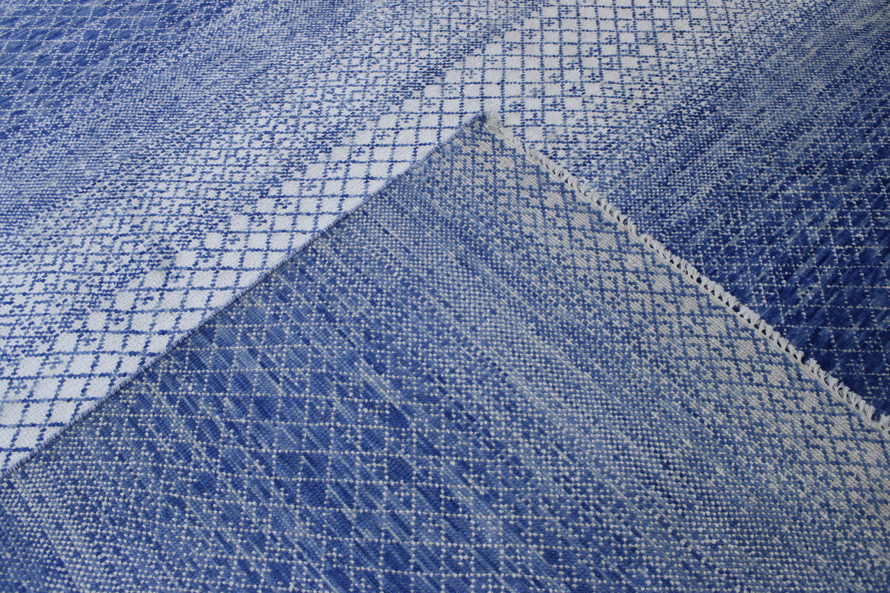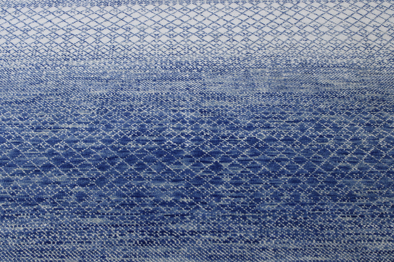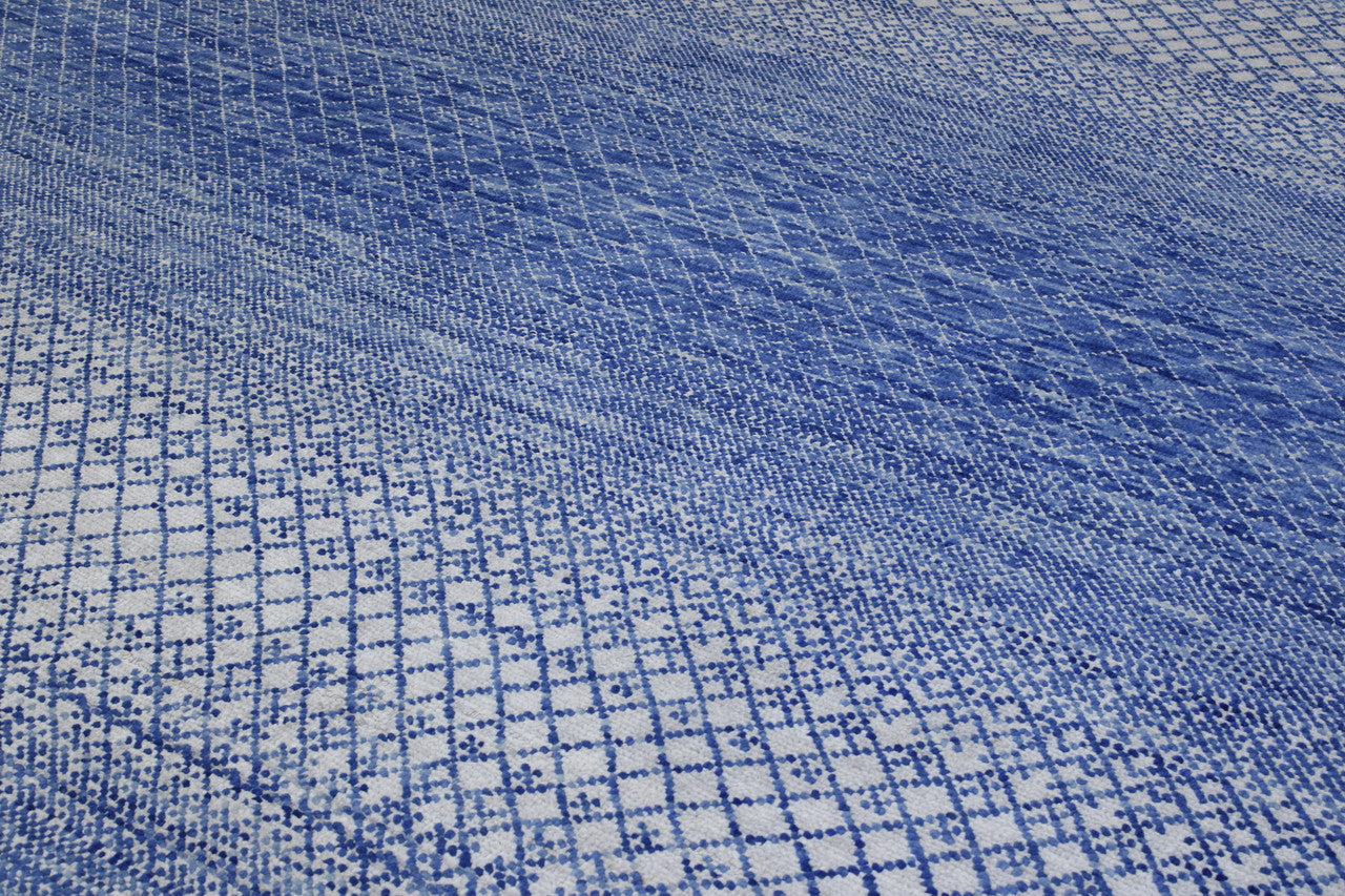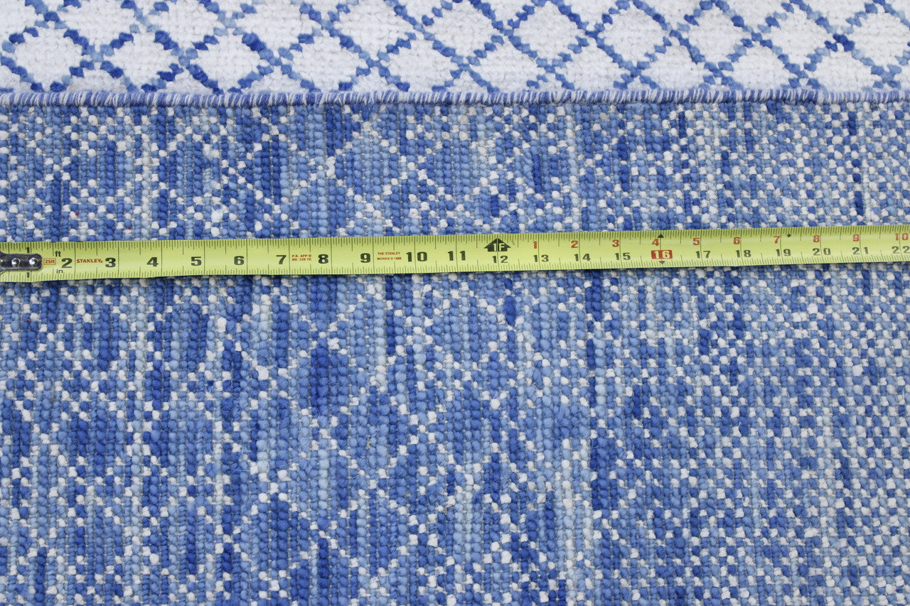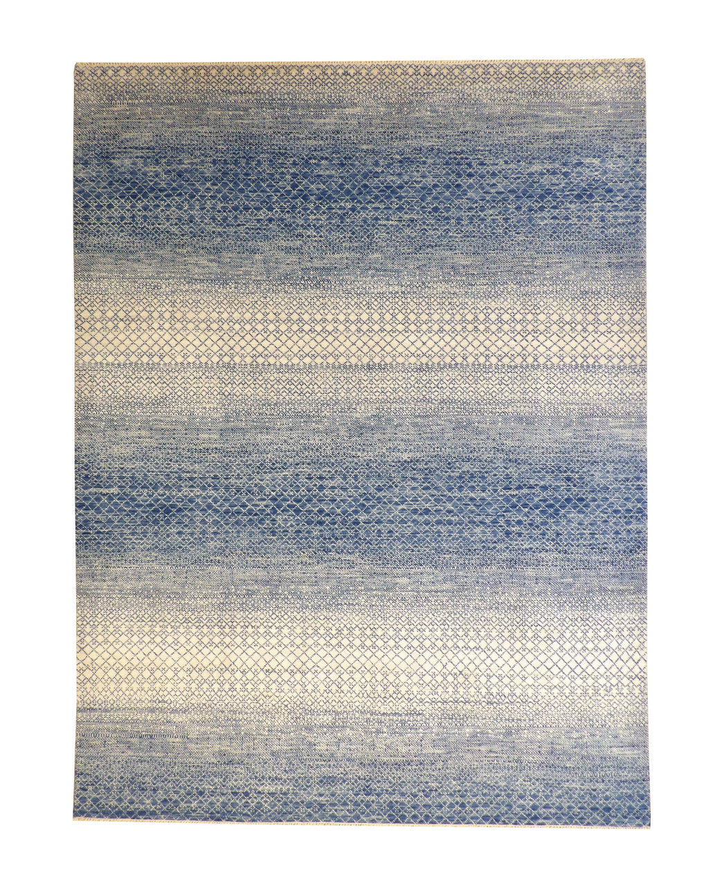 Exact Size: 9.2x12.2Construction: Hand KnottedShape: RectangleMaterial: WoolColor Combination: Blue/GreyStyle: ModernOrigin: India