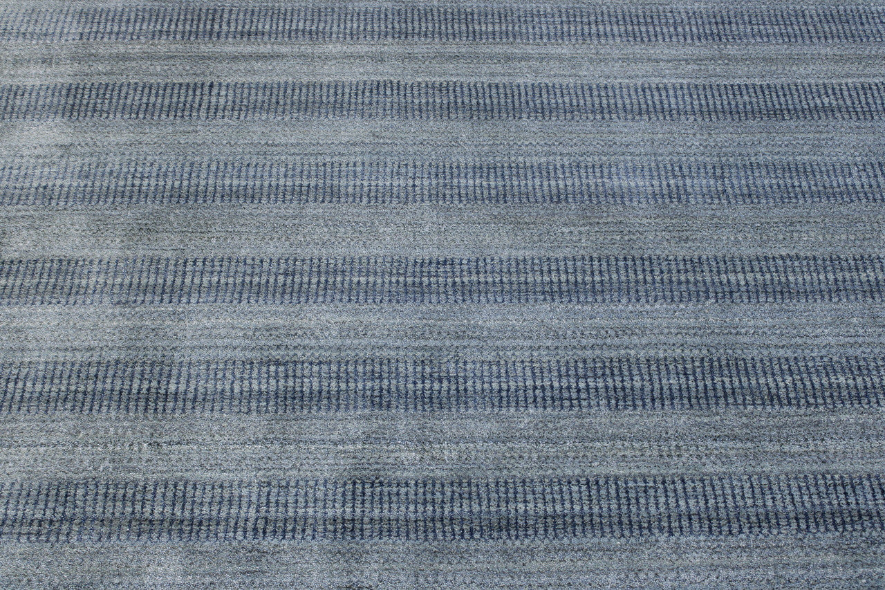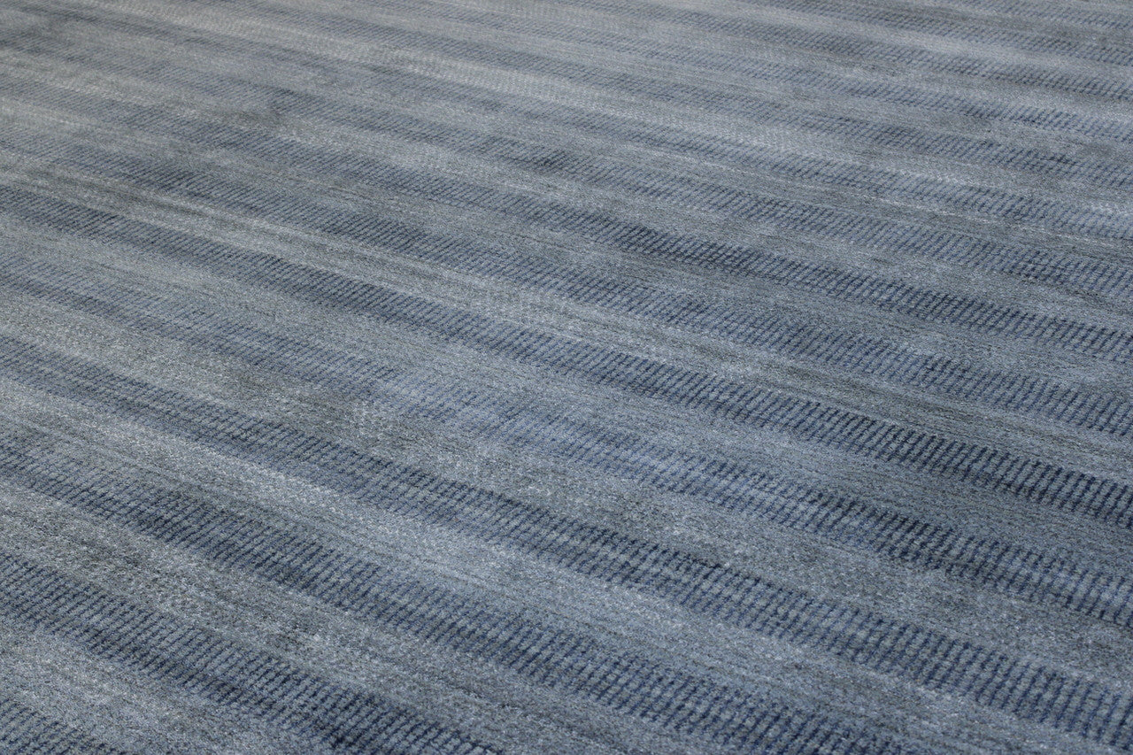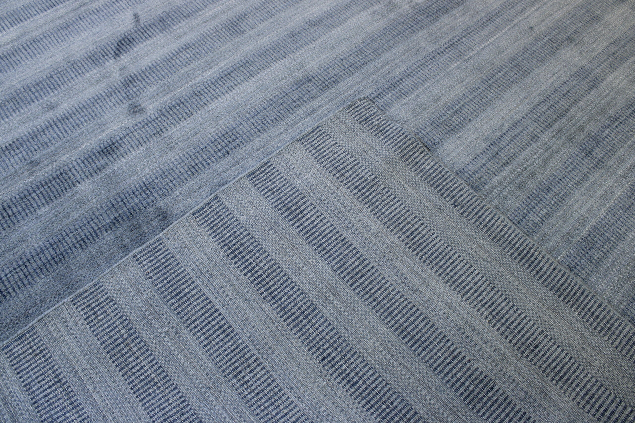 Exact Size: 8.11x11.8Construction: Hand KnottedShape: RectangleMaterial: WoolColor Combination: Grey/BlueStyle: ModernOrigin: India