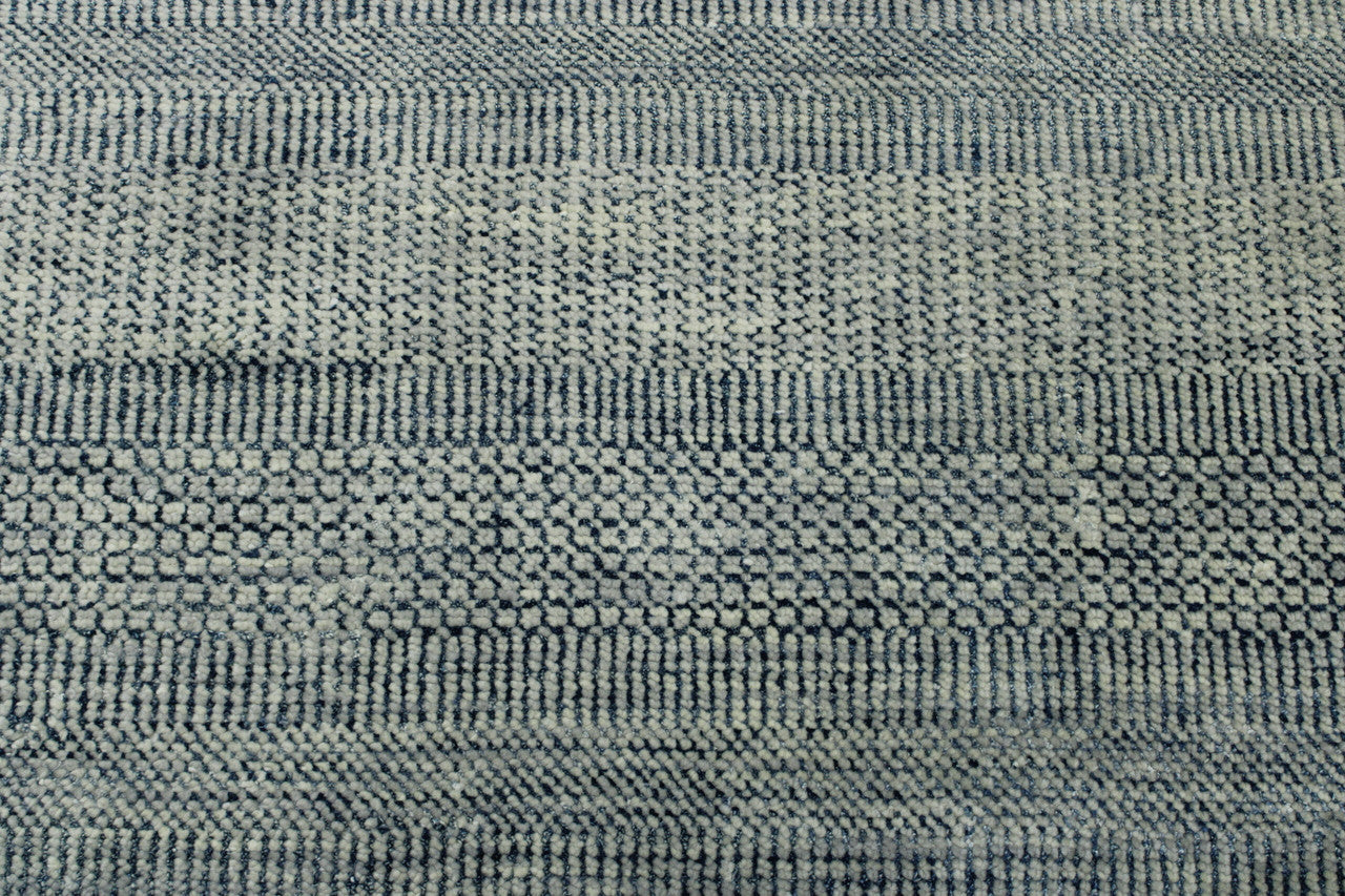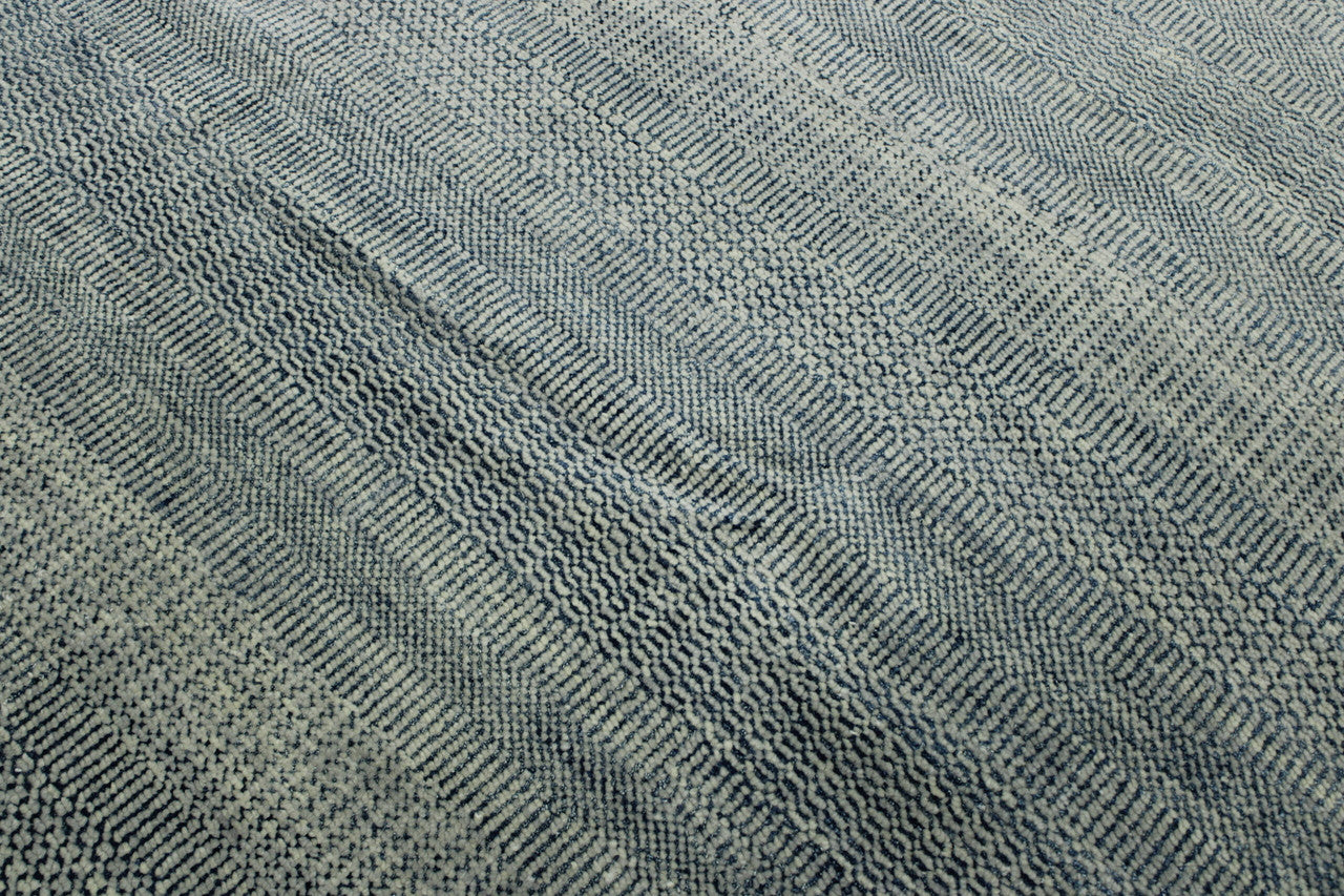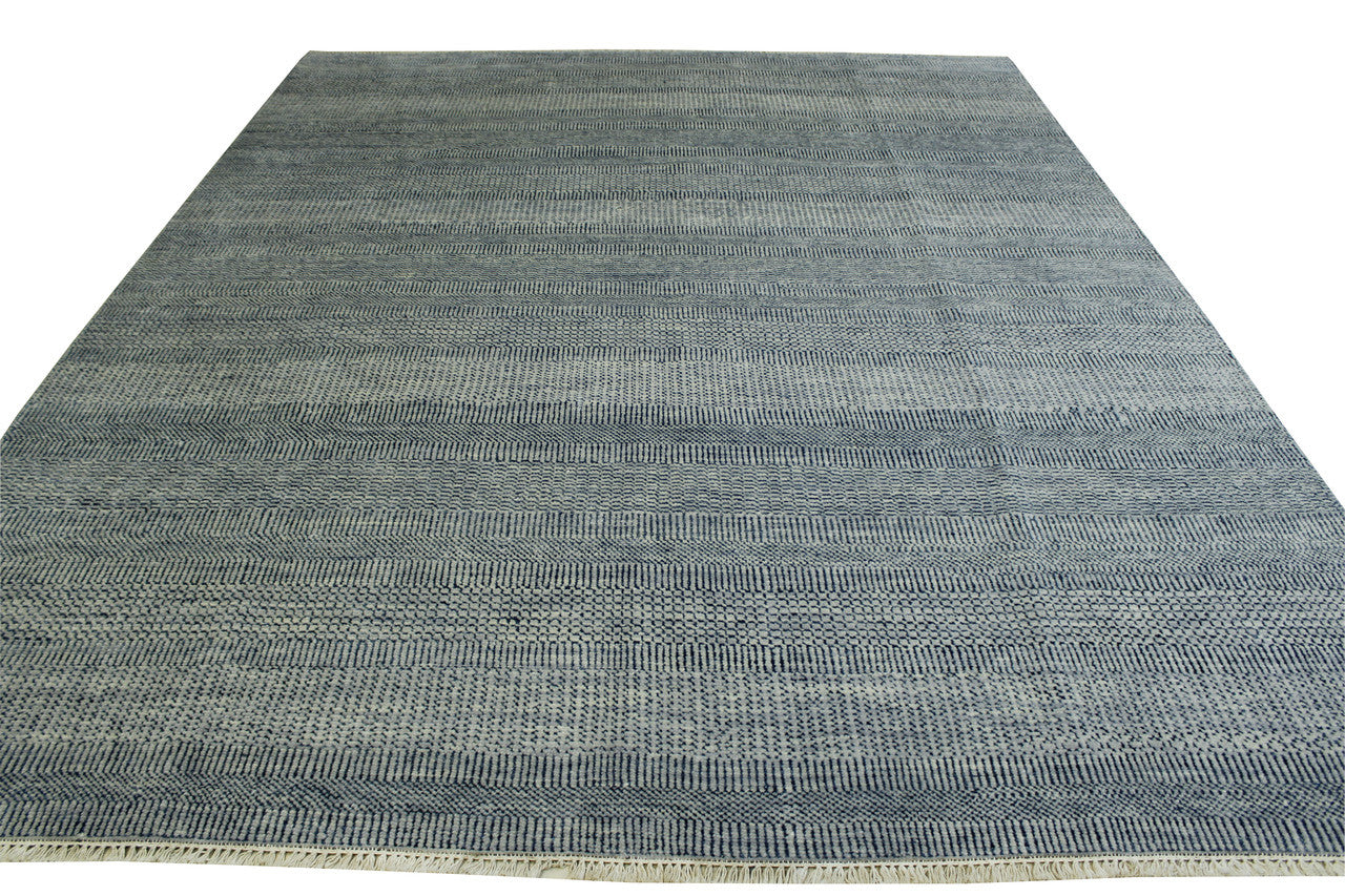Exact Size: 8 X 9.11Construction: Hand KnottedShape: RectangleMaterial: WoolColor Combination: Grey/BlueStyle: ModernOrigin: India