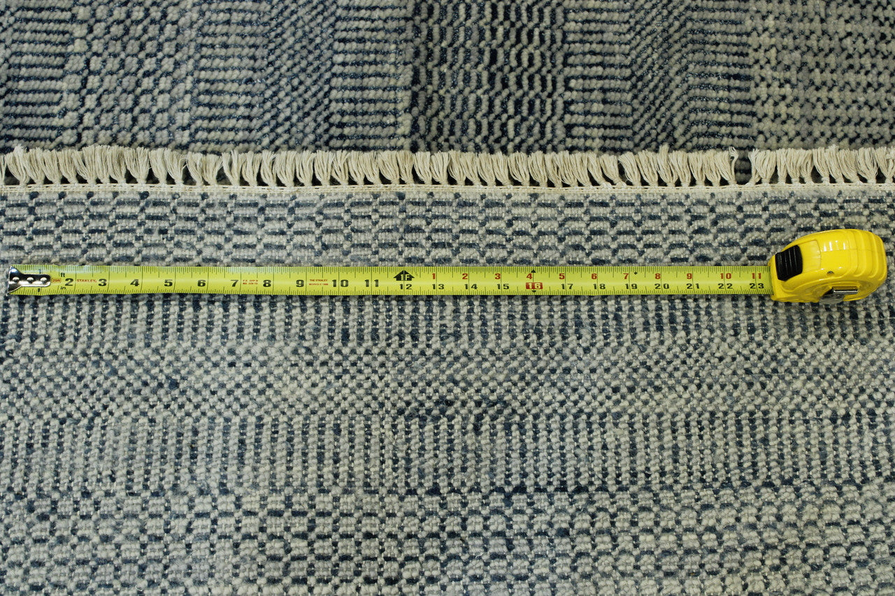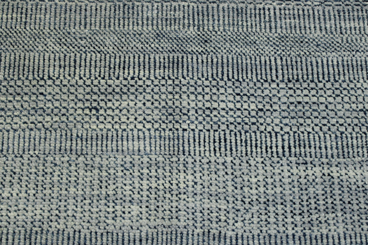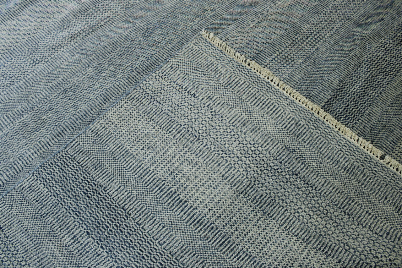 Exact Size: 8 X 9.11Construction: Hand KnottedShape: RectangleMaterial: WoolColor Combination: Grey/BlueStyle: ModernOrigin: India