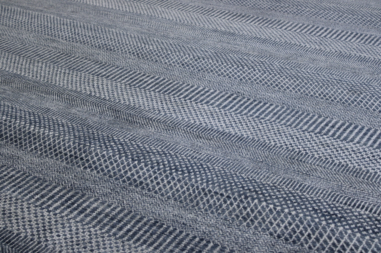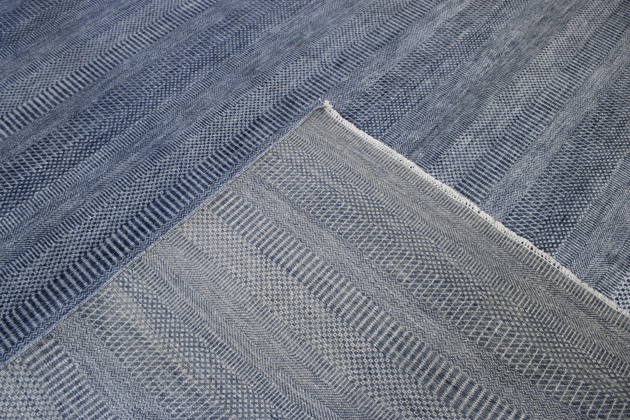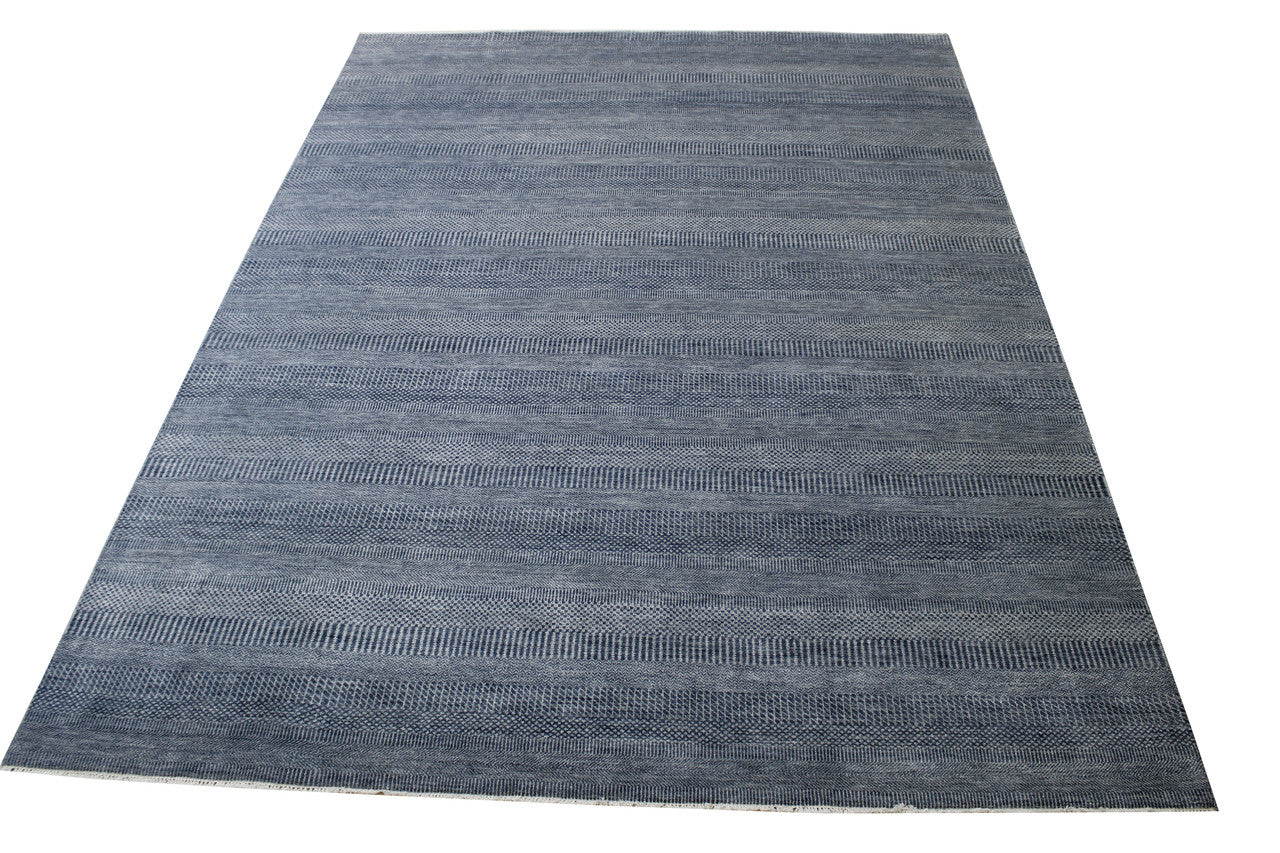 Exact Size: 9.0x12.1Construction: Hand KnottedShape: RectangleMaterial: Wool/SilkColor Combination: Grey/BlueStyle: ModernOrigin: India