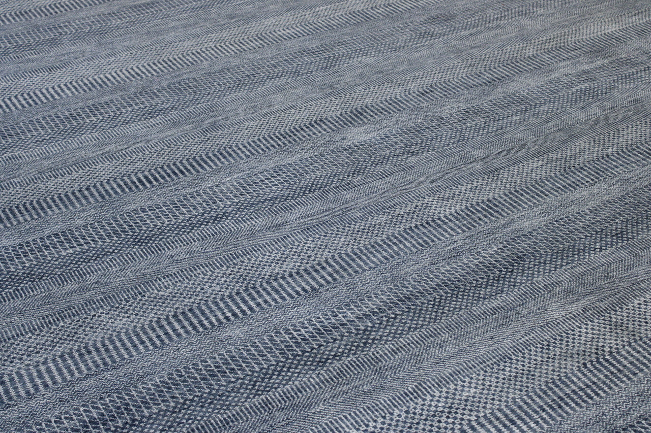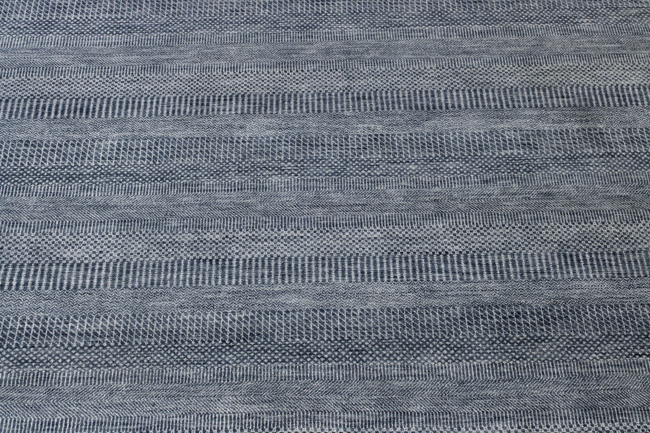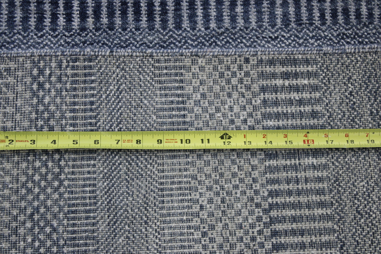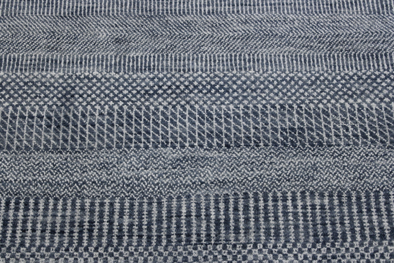 Exact Size: 9.0x12.1Construction: Hand KnottedShape: RectangleMaterial: Wool/SilkColor Combination: Grey/BlueStyle: ModernOrigin: India