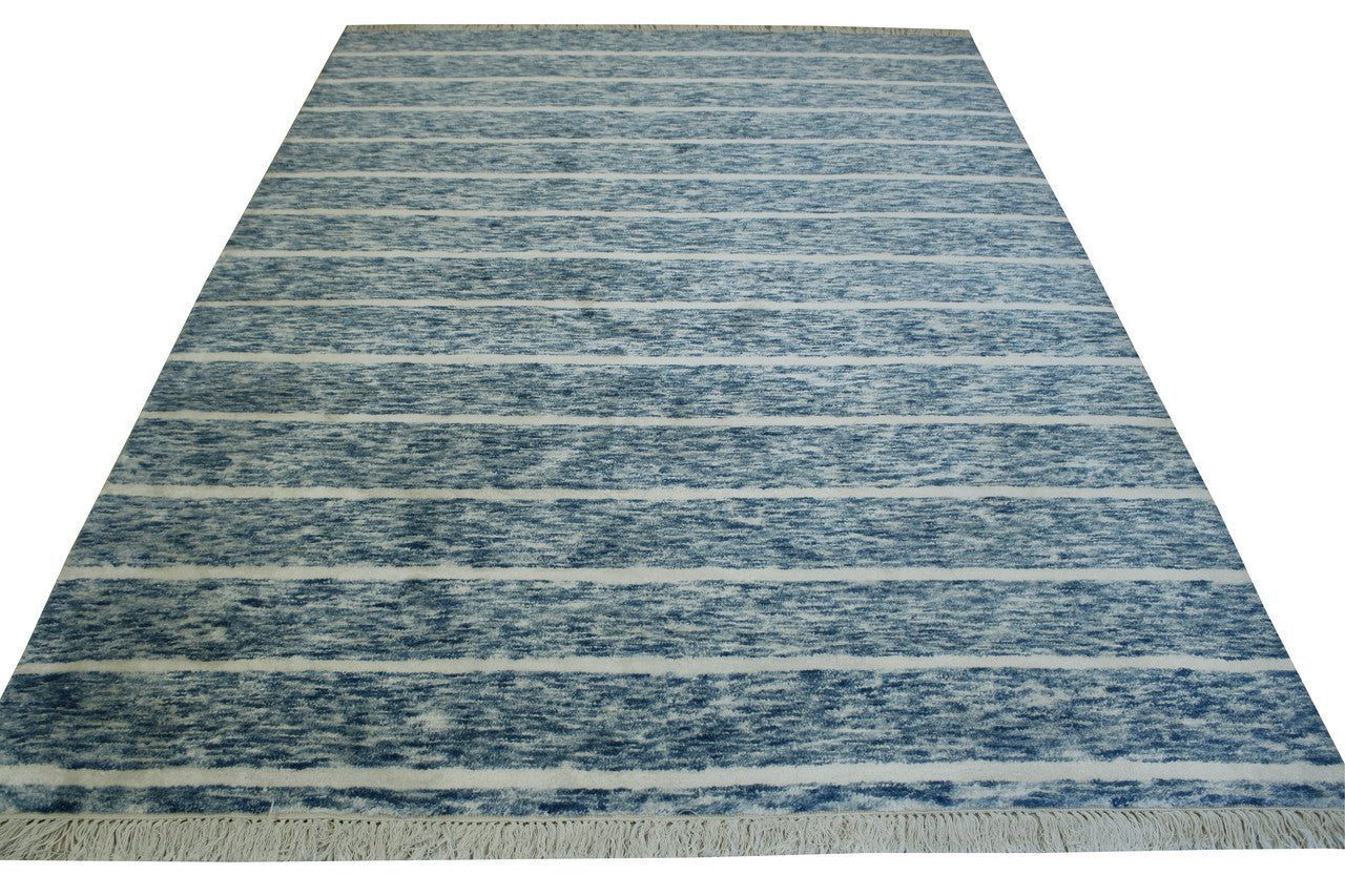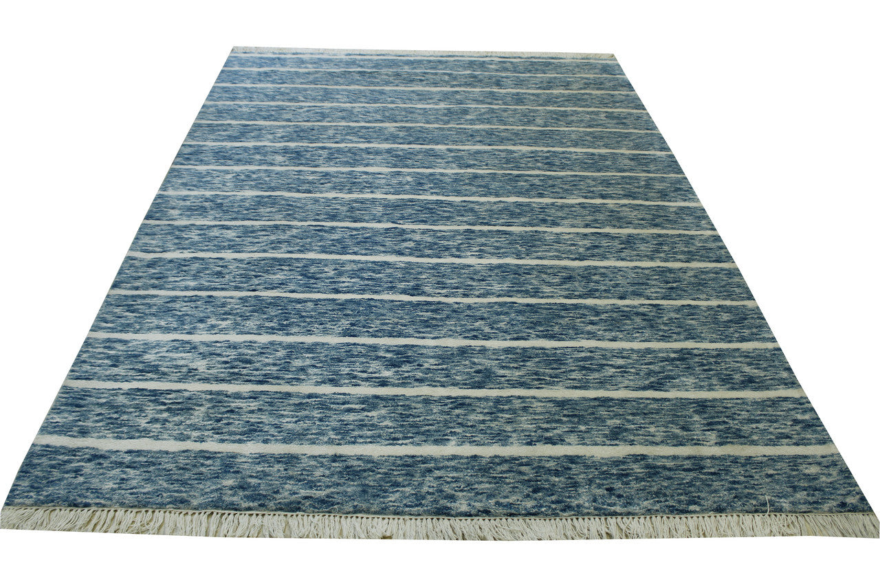 Exact Size: 5.10x7.10Construction: Hand KnottedShape: RectangleMaterial: Wool/SilkColor Combination: White/BlueOrigin: India