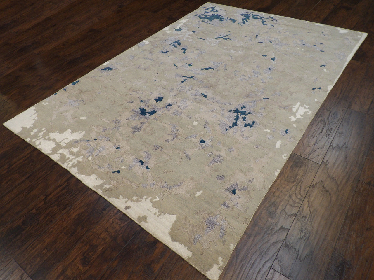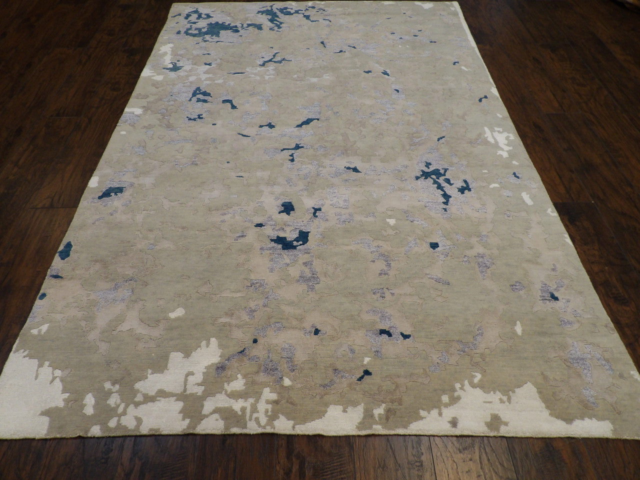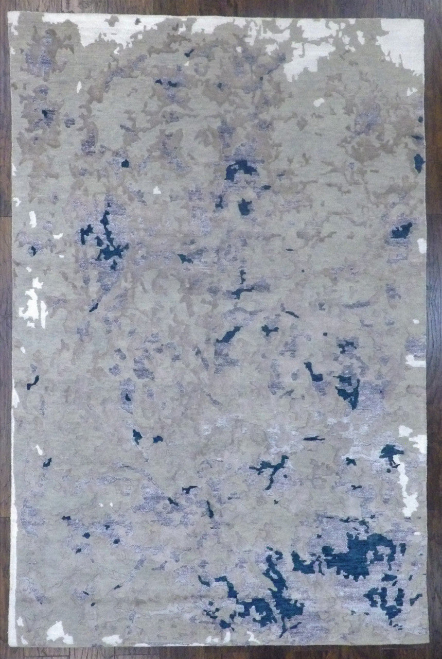 Exact Size:6'0"x9'0"Construction:Hand KnottedShape:RectangleMaterial:WOOL/SILKColor Combination:GREY/BLUEOrigin:India