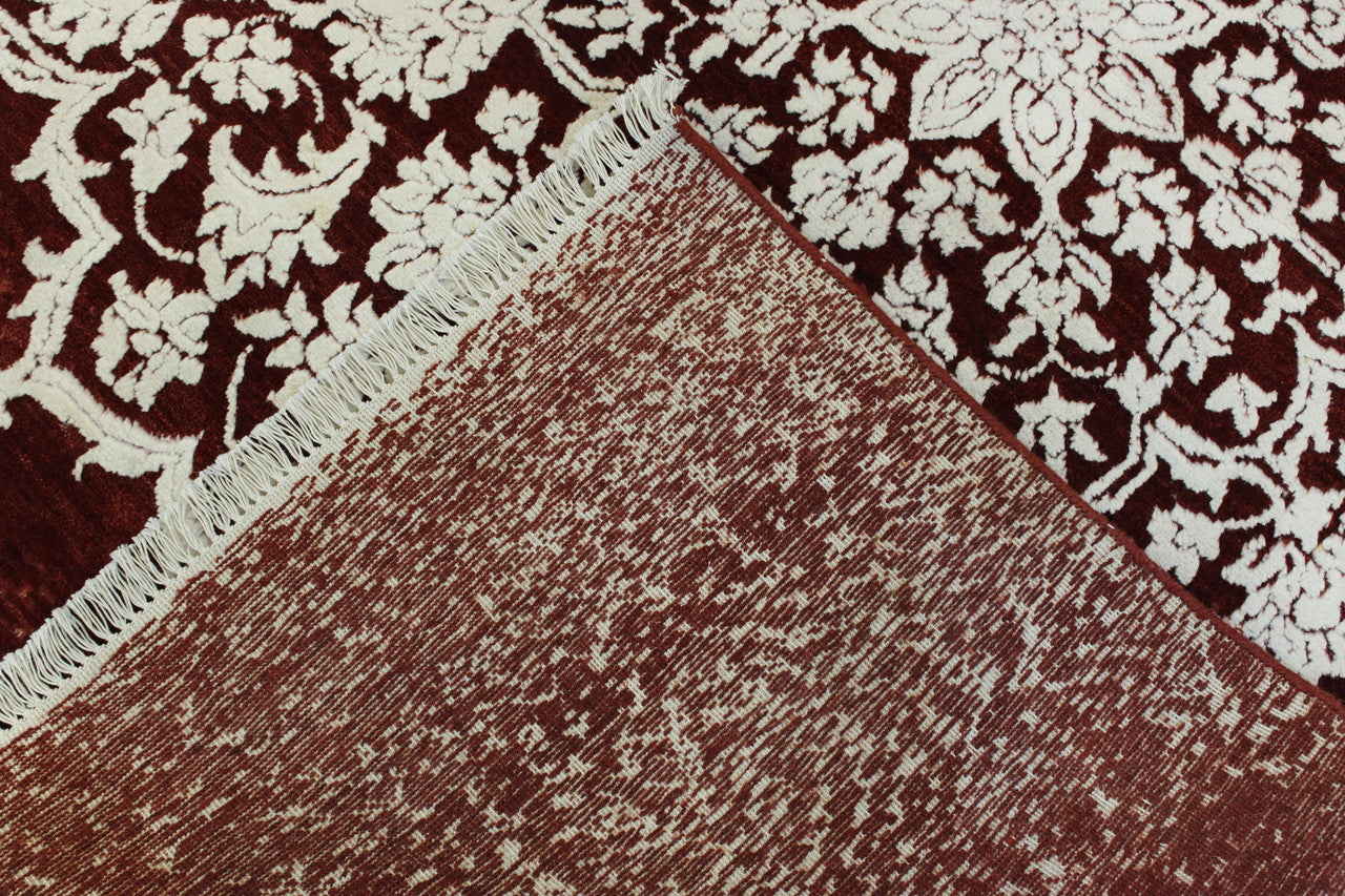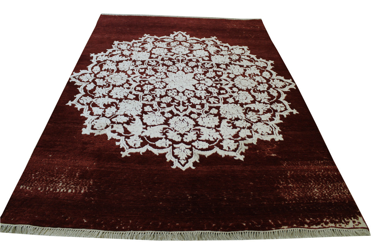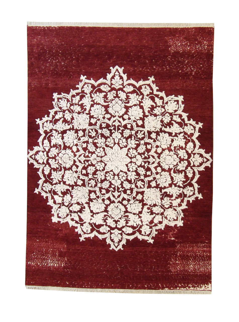 Exact Size: 5.4x7.6Construction: Hand KnottedShape: RectangleMaterial: Wool/SilkColor Combination: Red/WhiteOrigin: India