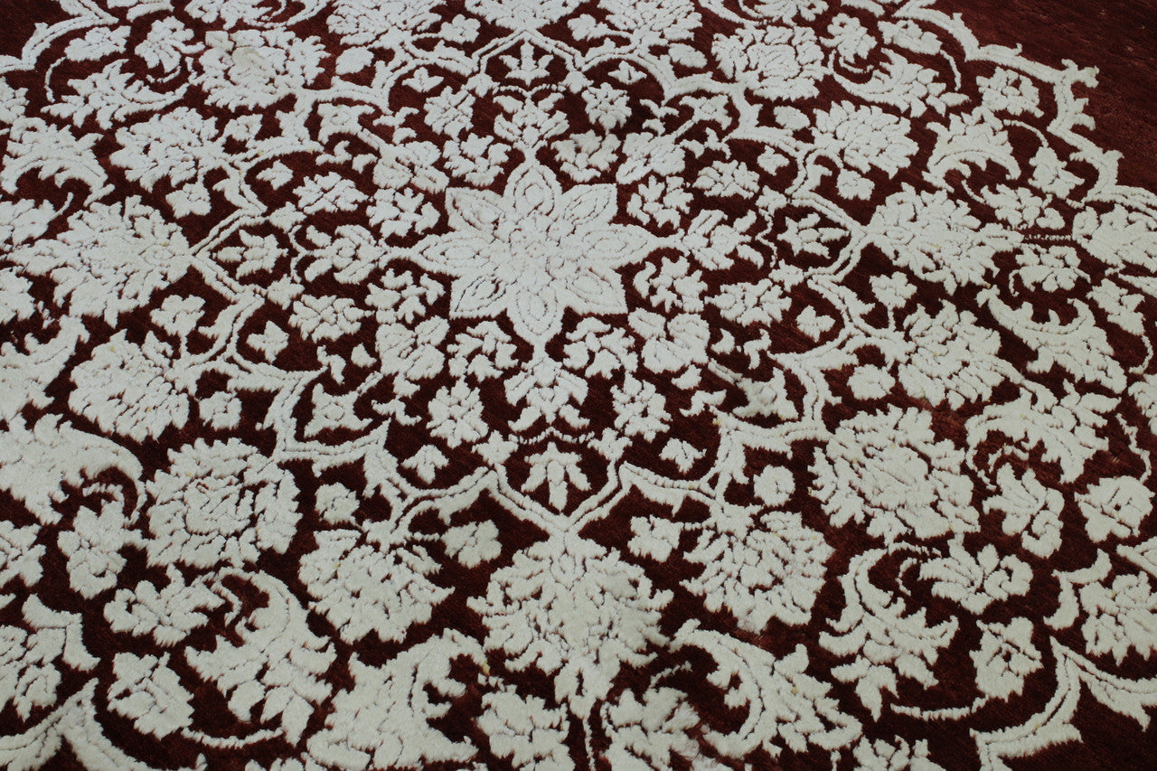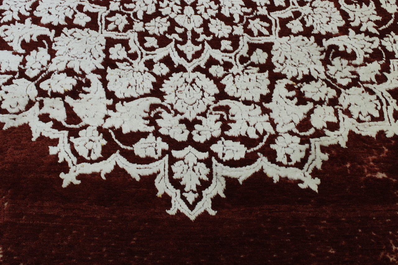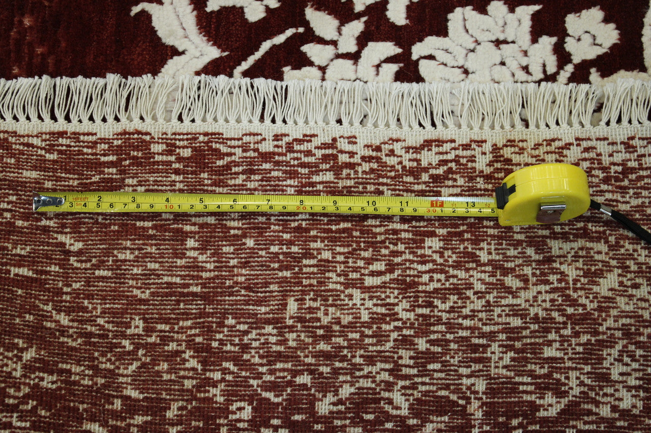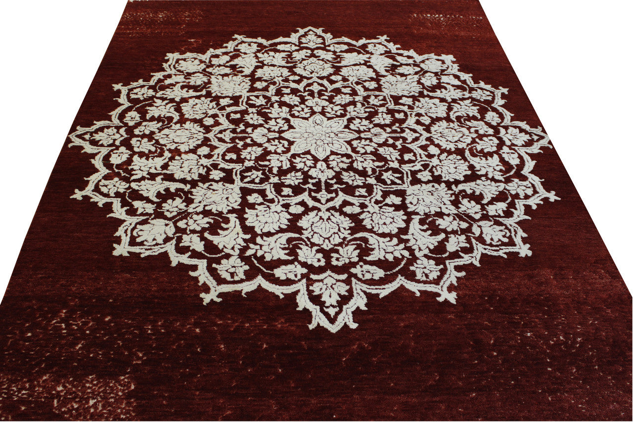 Exact Size: 5.4x7.6Construction: Hand KnottedShape: RectangleMaterial: Wool/SilkColor Combination: Red/WhiteOrigin: India