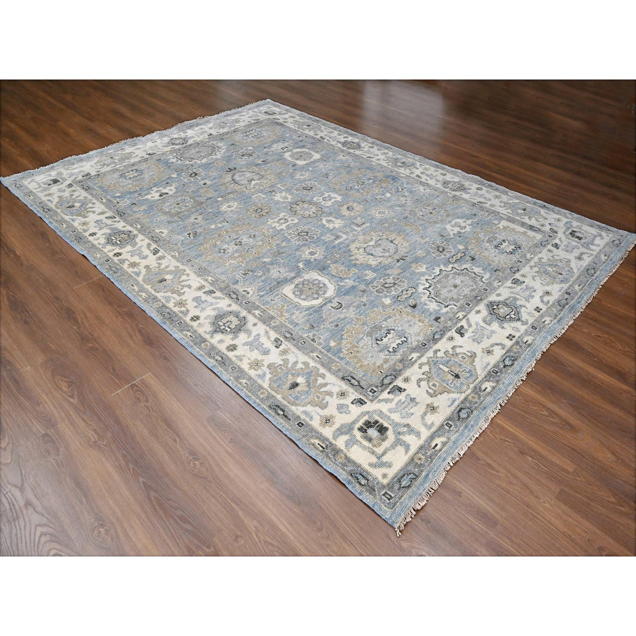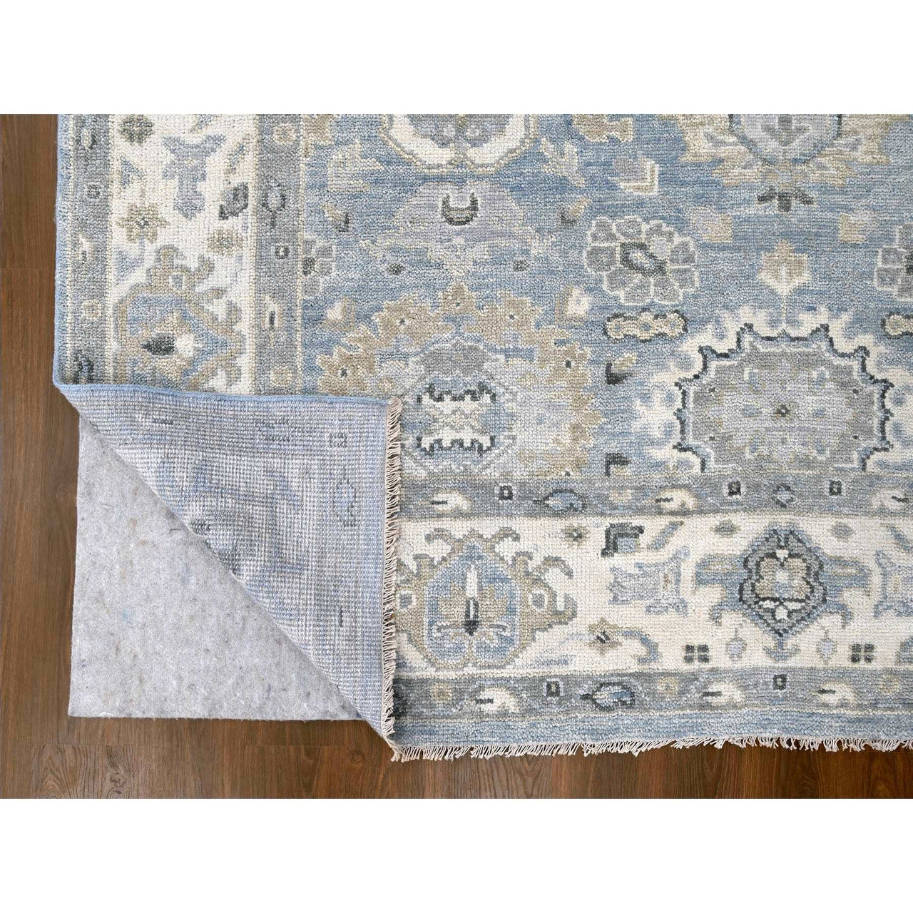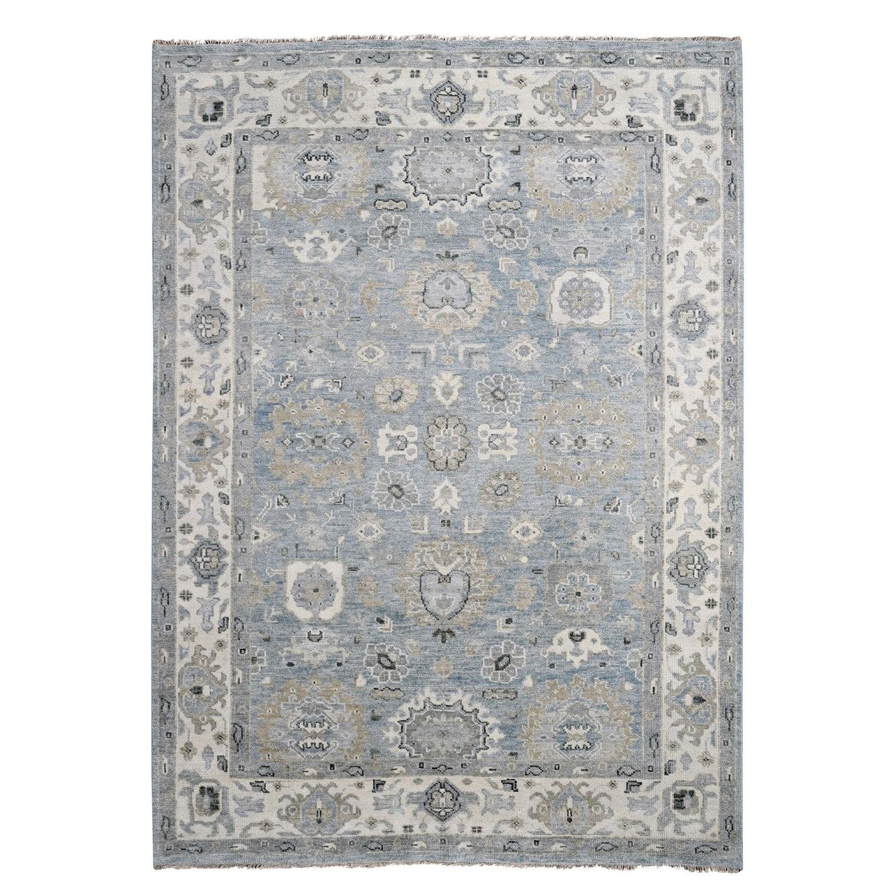 Oushak And Peshawar Wool Hand Knotted Rug Blue Ivory 8.11X11.10 -O084966