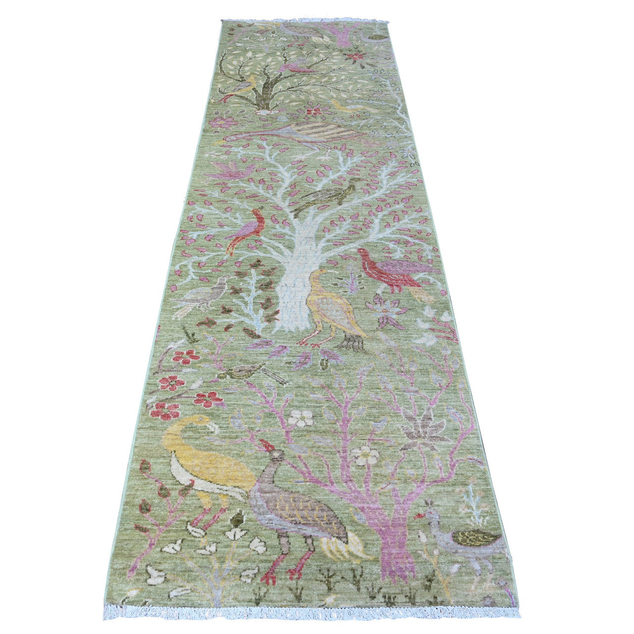 Oushak And Peshawar Wool Hand Knotted Rug Green No Border 2.11X9.8 -O088317