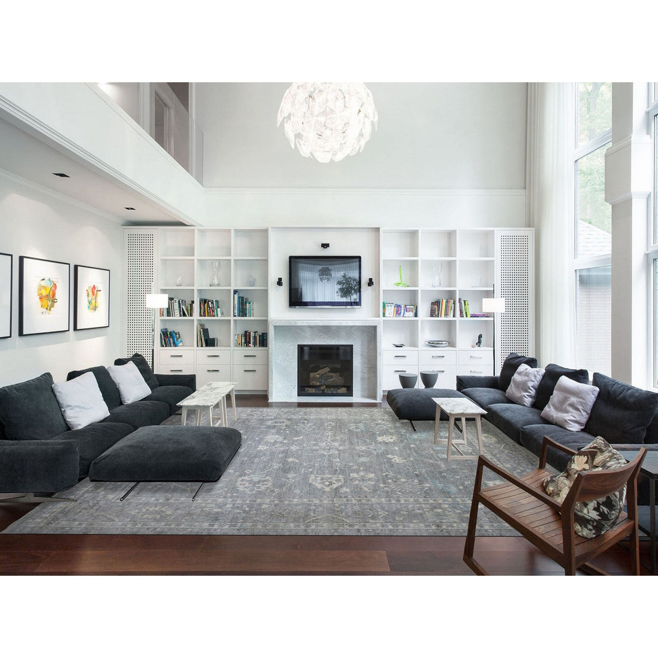 Oushak And Peshawar Wool Hand Knotted Rug Grey Gray 12.0X15.2 -O071479