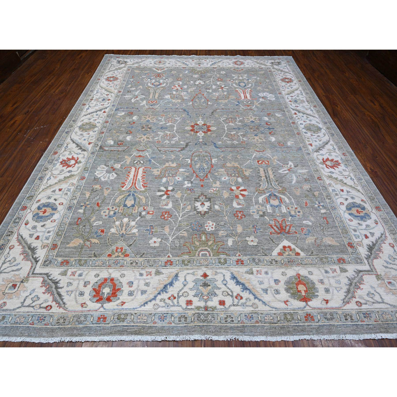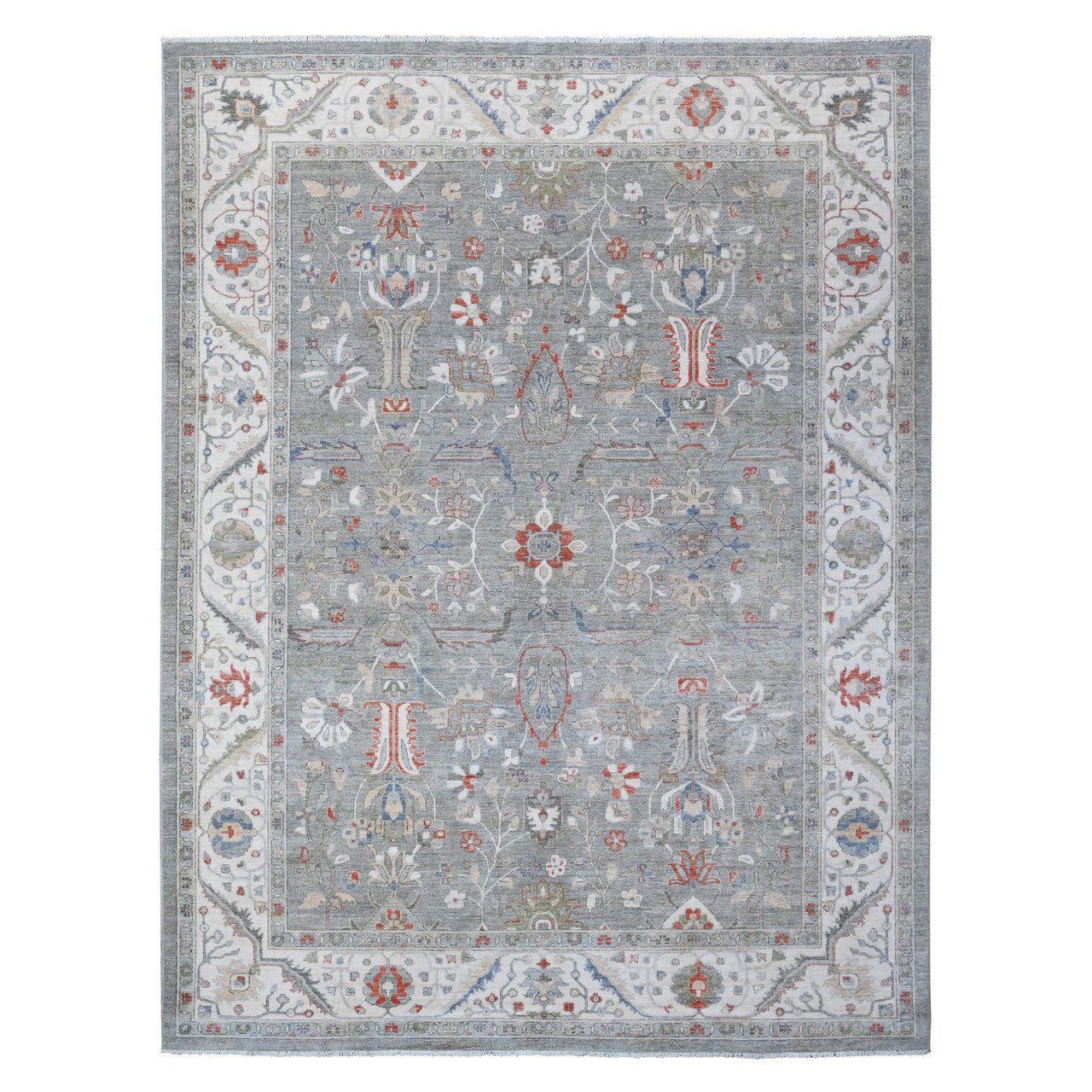 Oushak And Peshawar Wool Hand Knotted Rug Grey Ivory 9.2X11.10 -O088643