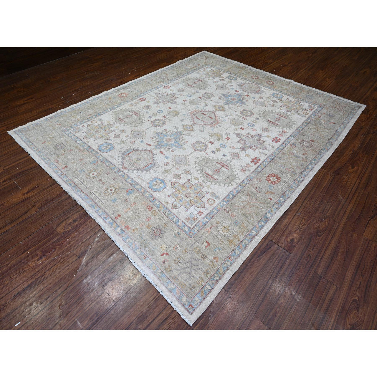 Oushak And Peshawar Wool Hand Knotted Rug Ivory Gray 8.0X9.9 -O074926