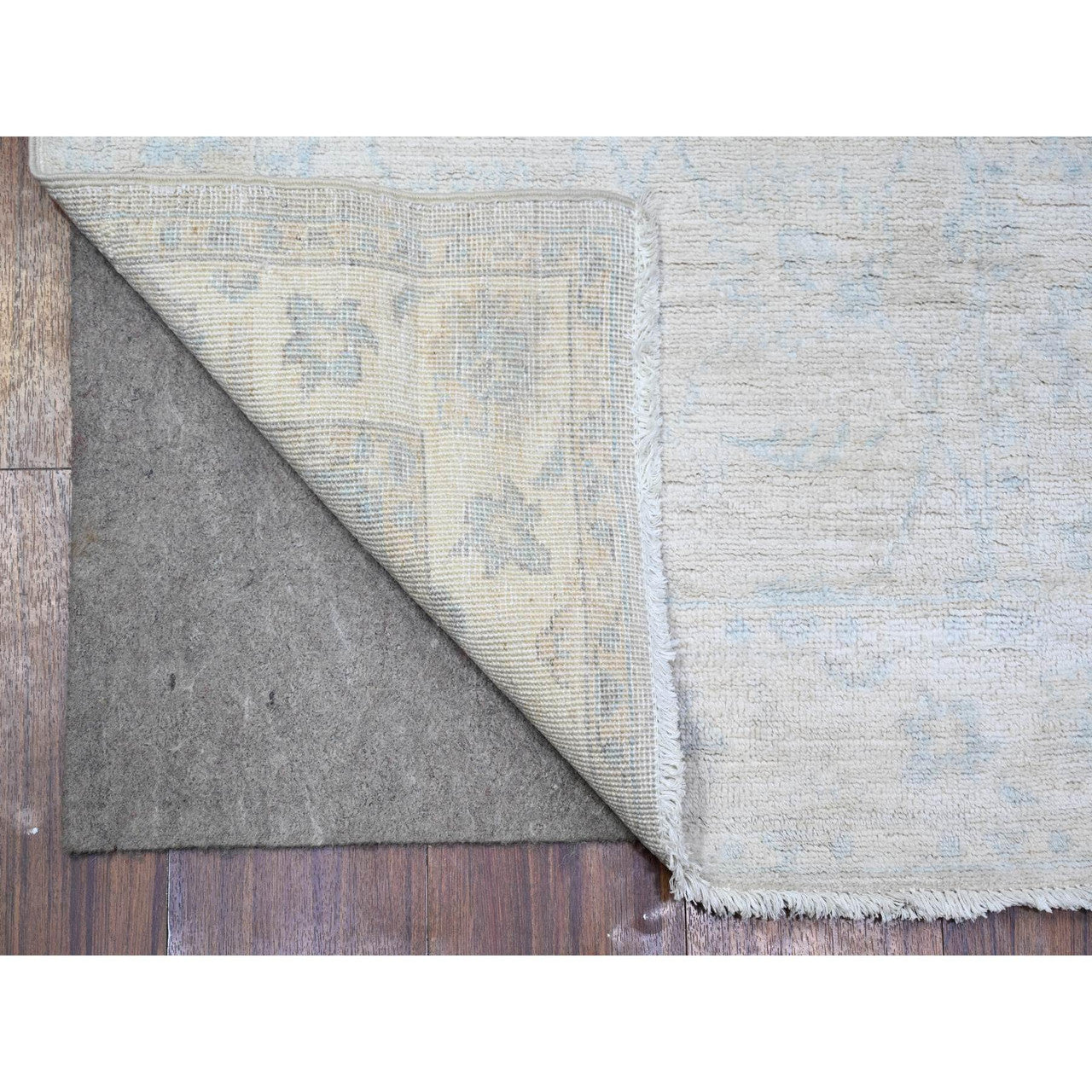 Oushak And Peshawar Wool Hand Knotted Rug Ivory Ivory 2.5X9.6 -O074509