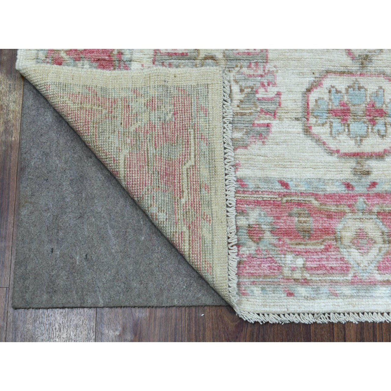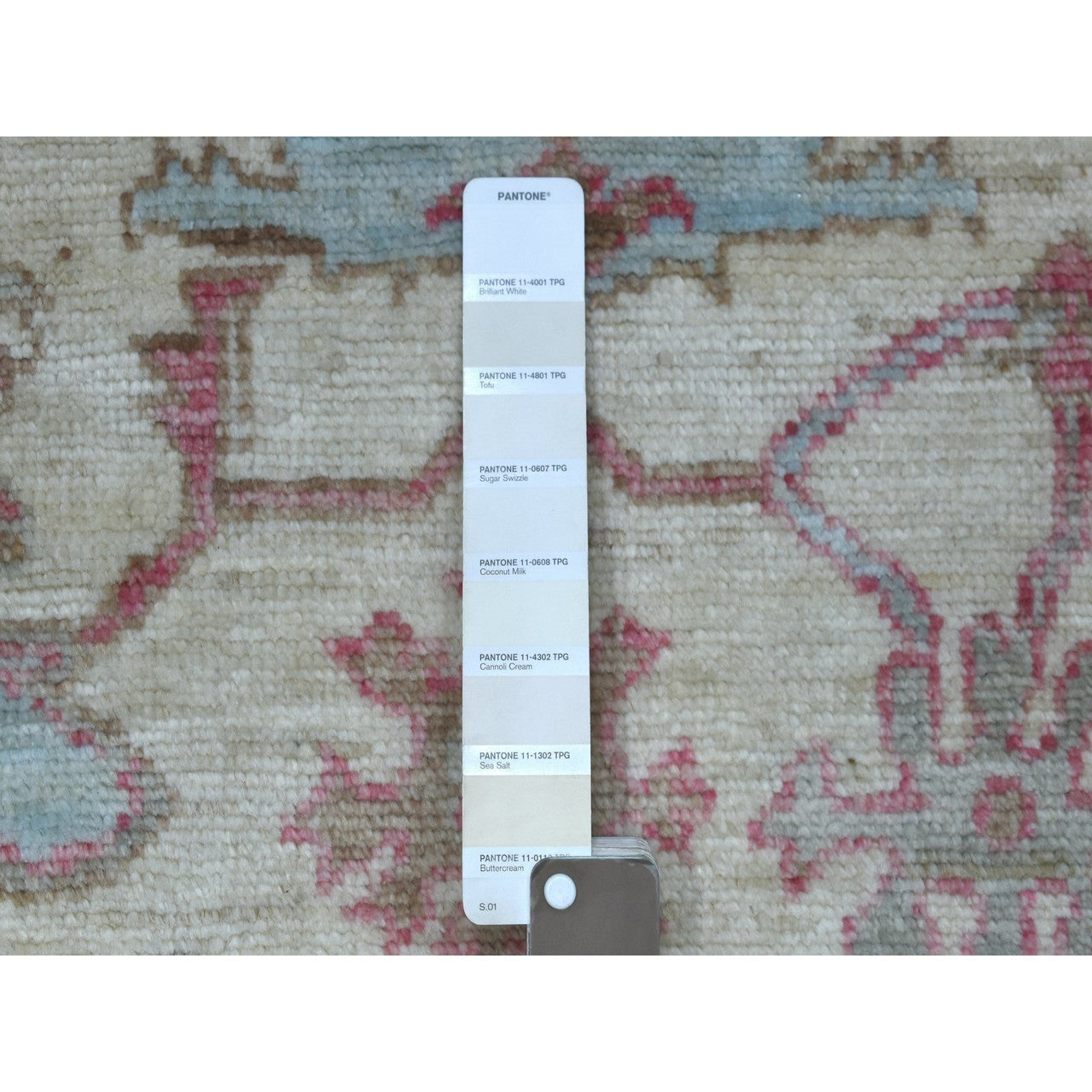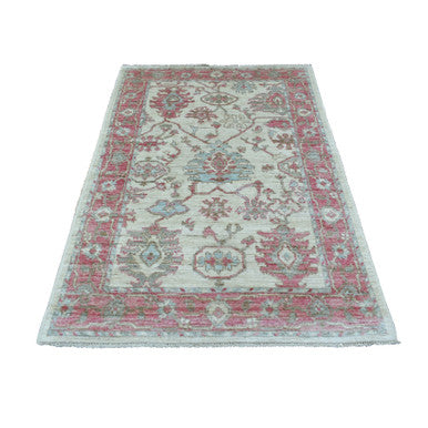 Oushak And Peshawar Wool Hand Knotted Rug Ivory Red 4.1X5.10 -O069819