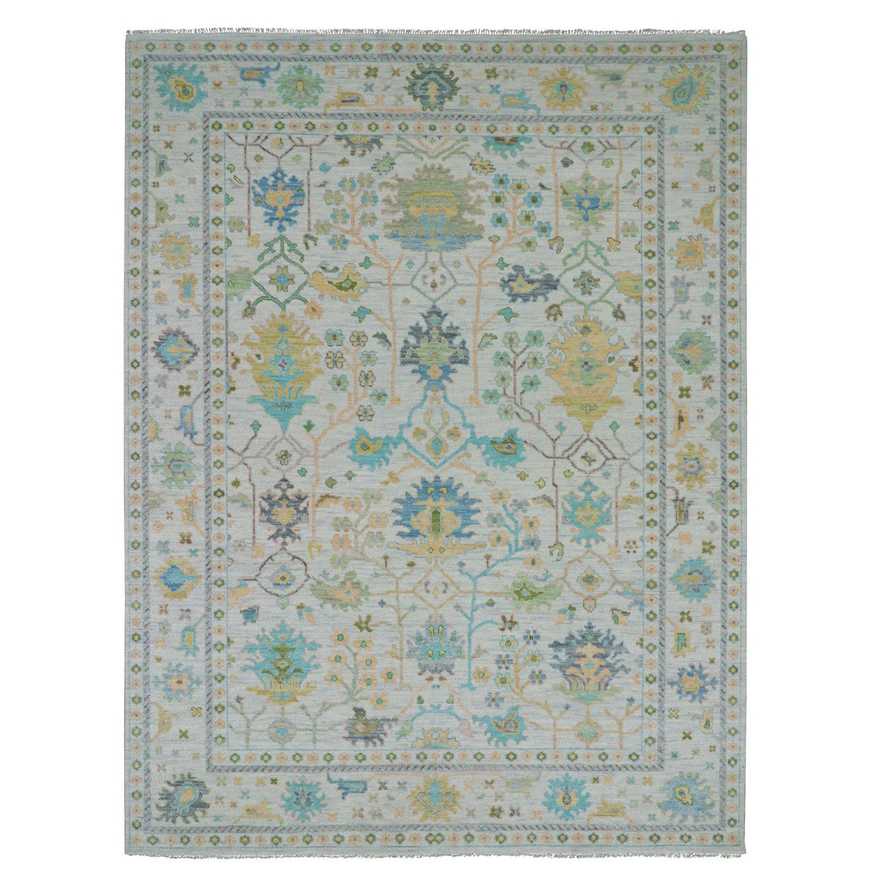 Oushak And Peshawar Wool Hand Knotted Rug Ivory White 9.0X12.0 -O079927