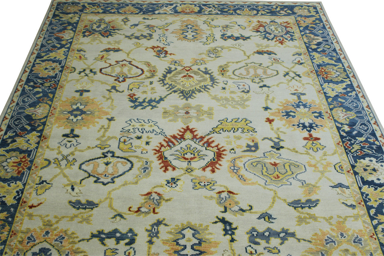 Exact Size: 9.0X12.0Construction: Hand KnottedShape: RectangleMaterial: WoolColor Combination: Soft Blue/BeigeStyle: OushakOrigin: India