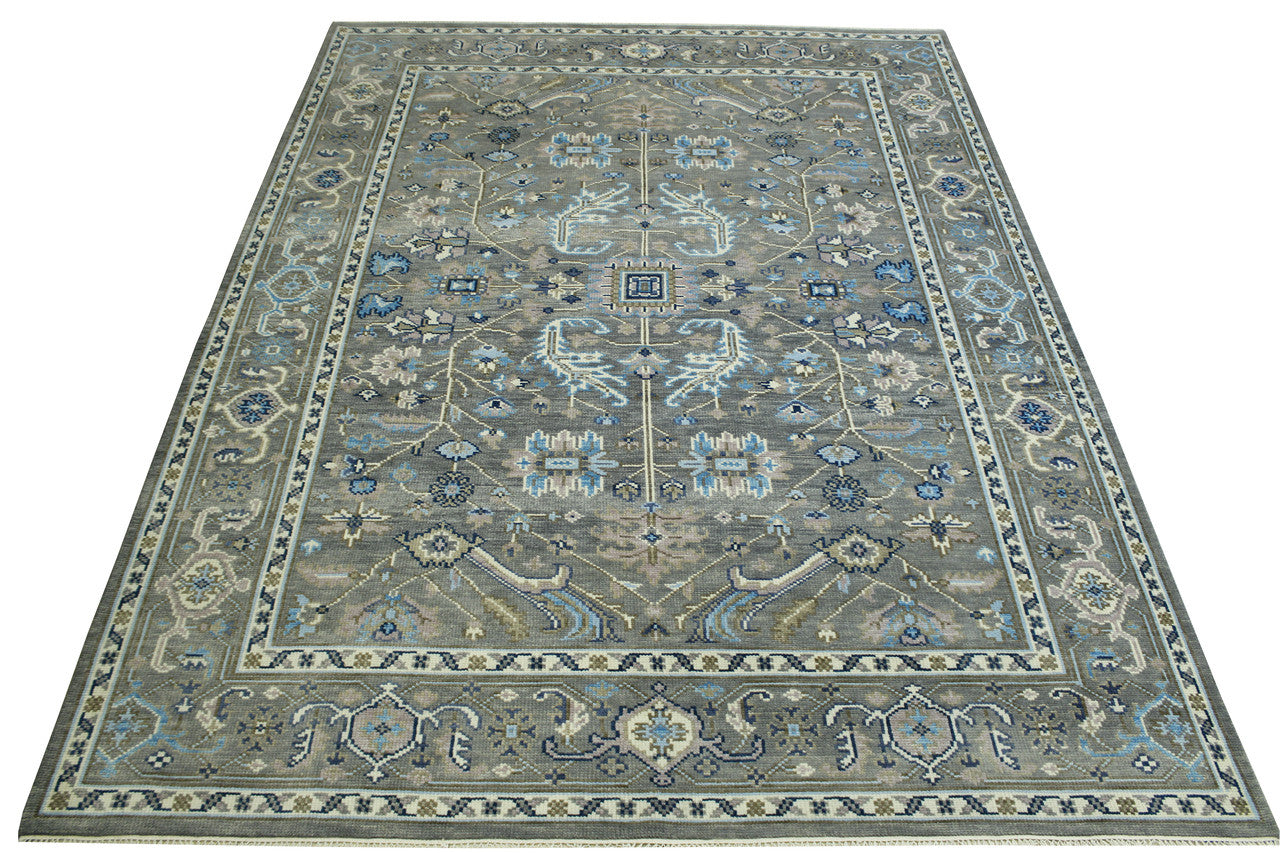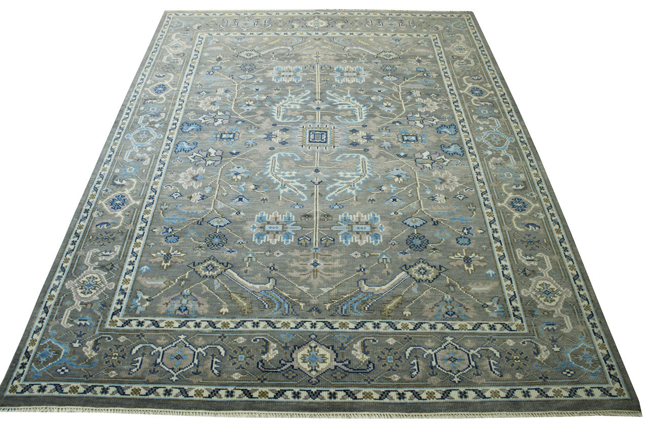 Exact Size: 9.0X12.0Construction: Hand KnottedShape: RectangleMaterial: WoolColor Combination: Soft Blue/GreyStyle: OushakOrigin: India